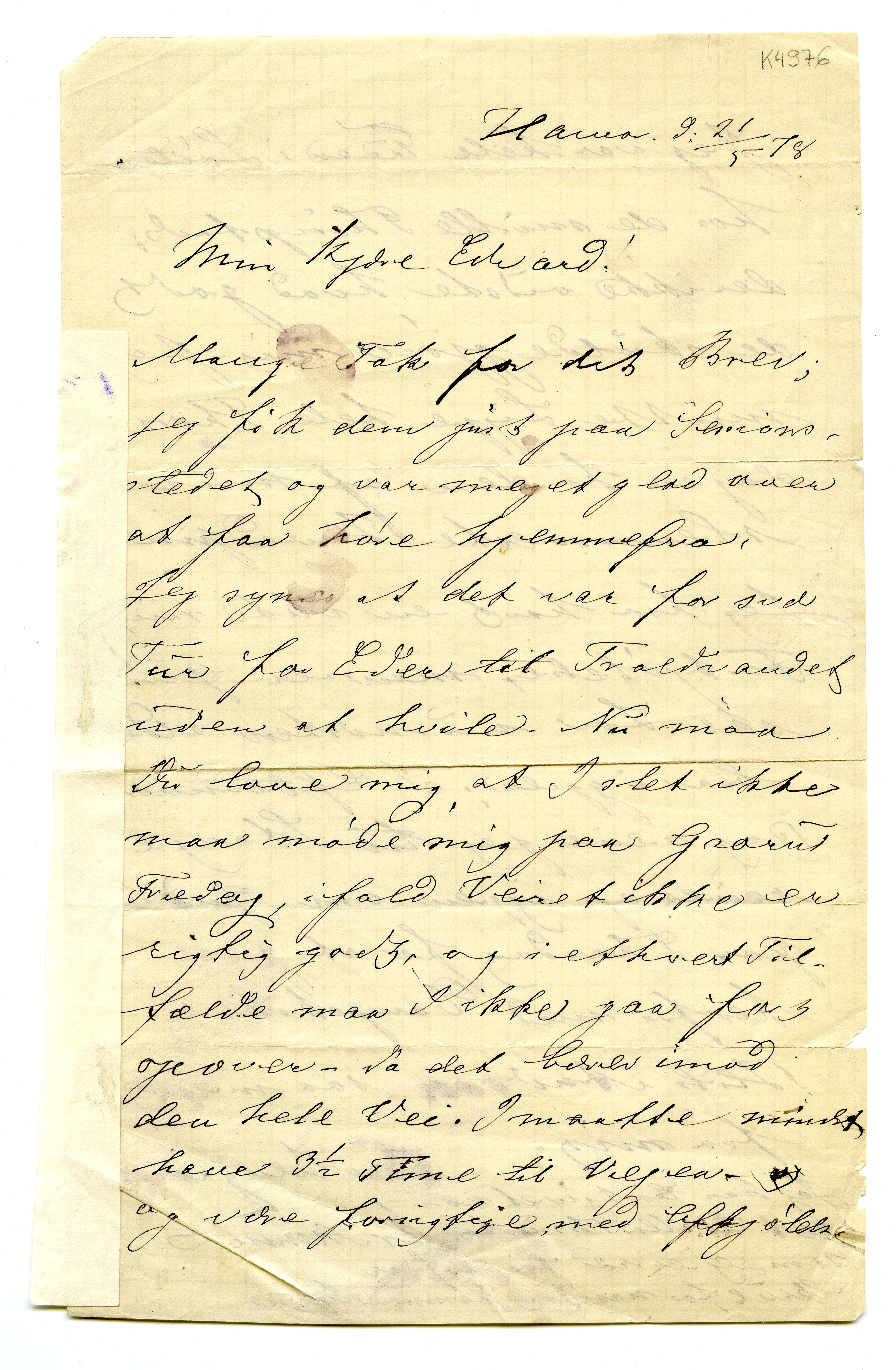 MM K 4976, Munchmuseet. Datert 21.05.1878. Brev fra Christian Munch.