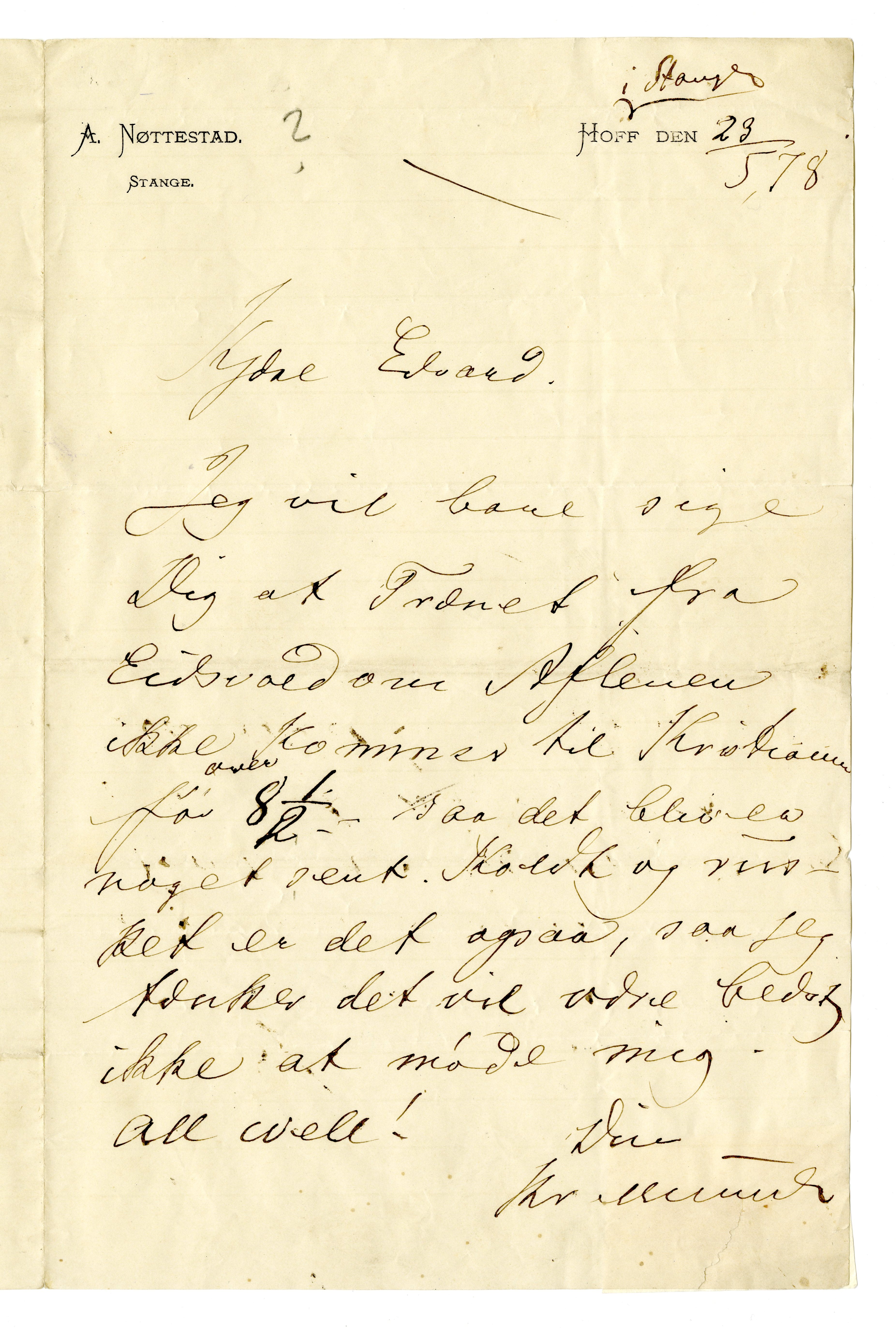 MM K 4977, Munchmuseet. Datert 23.05.1878. Brev fra Christian Munch.