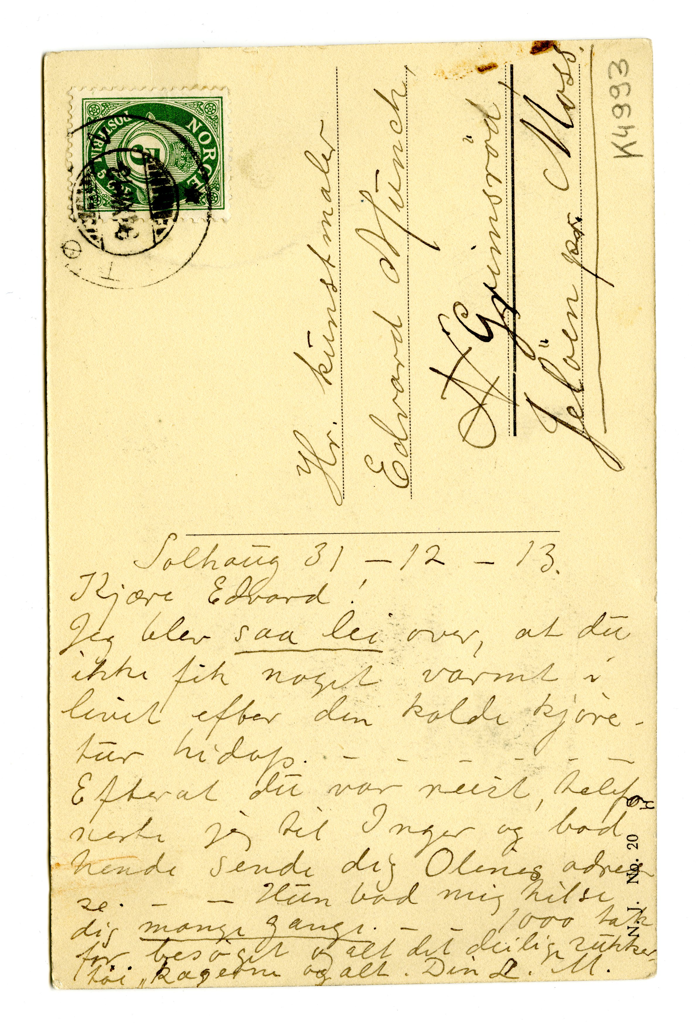 MM K 4993, Munchmuseet. Datert 31.12.1913. Brev fra Laura Munch.