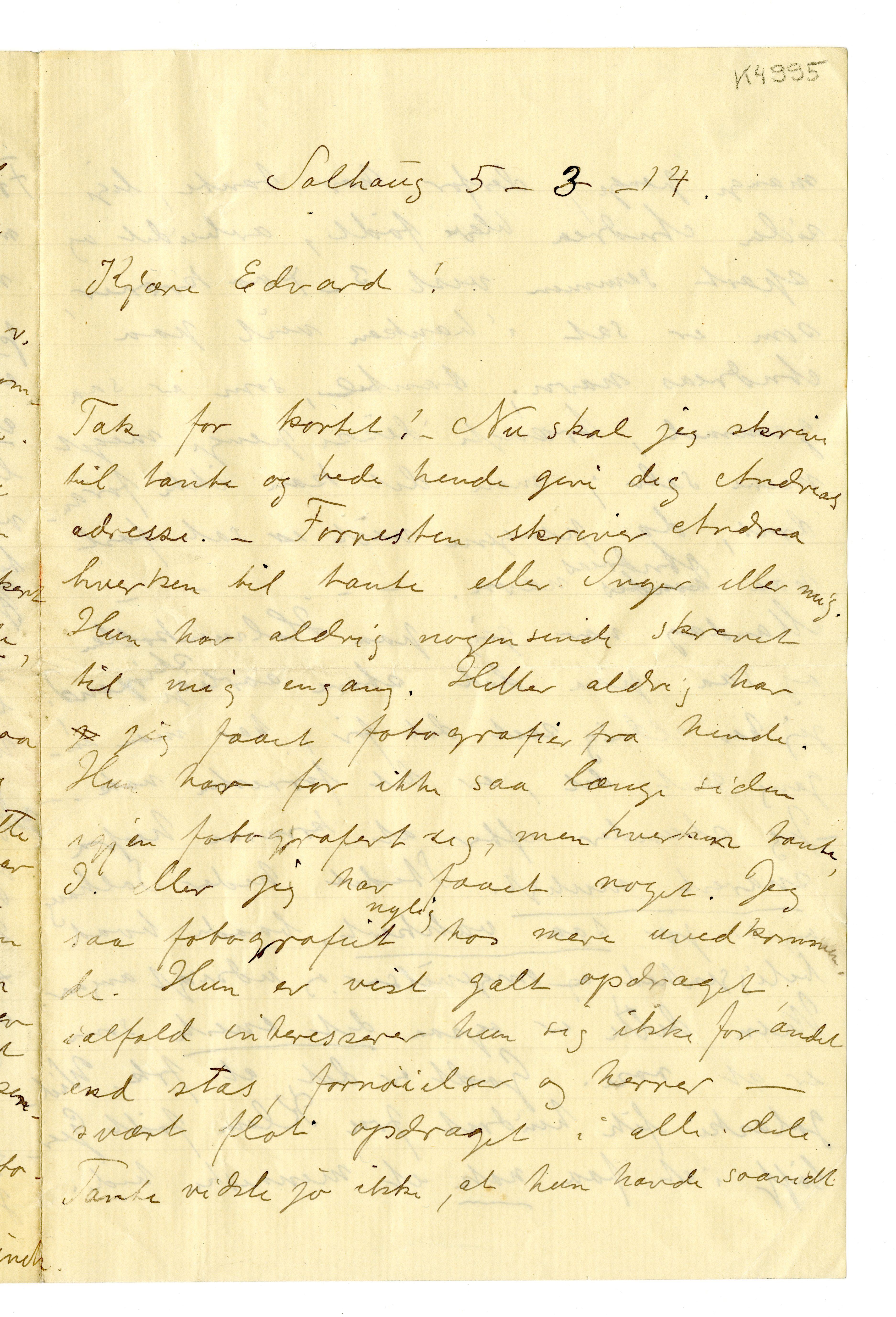 MM K 4995, Munchmuseet. Datert 05.03.1914. Brev fra Laura Munch.
