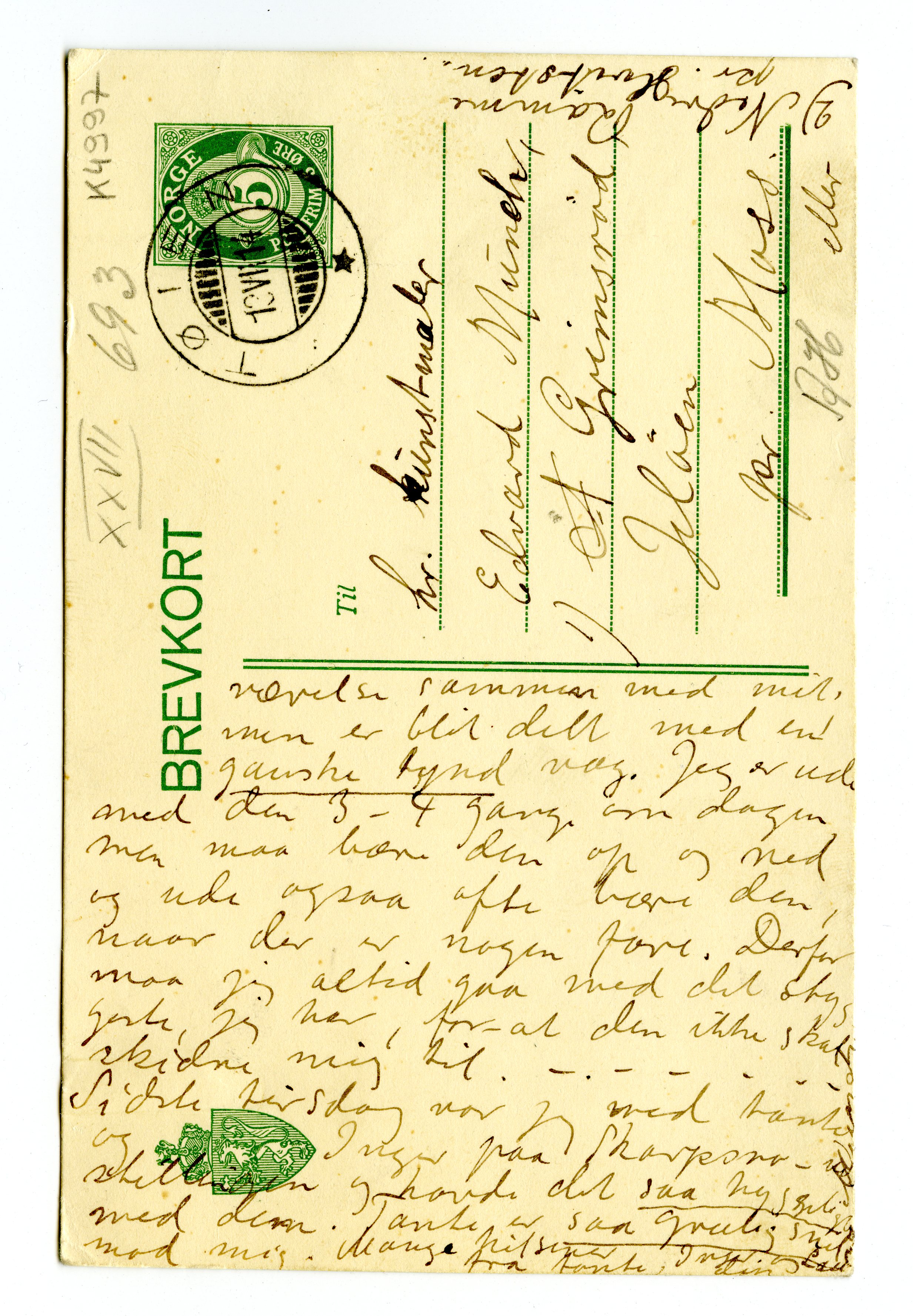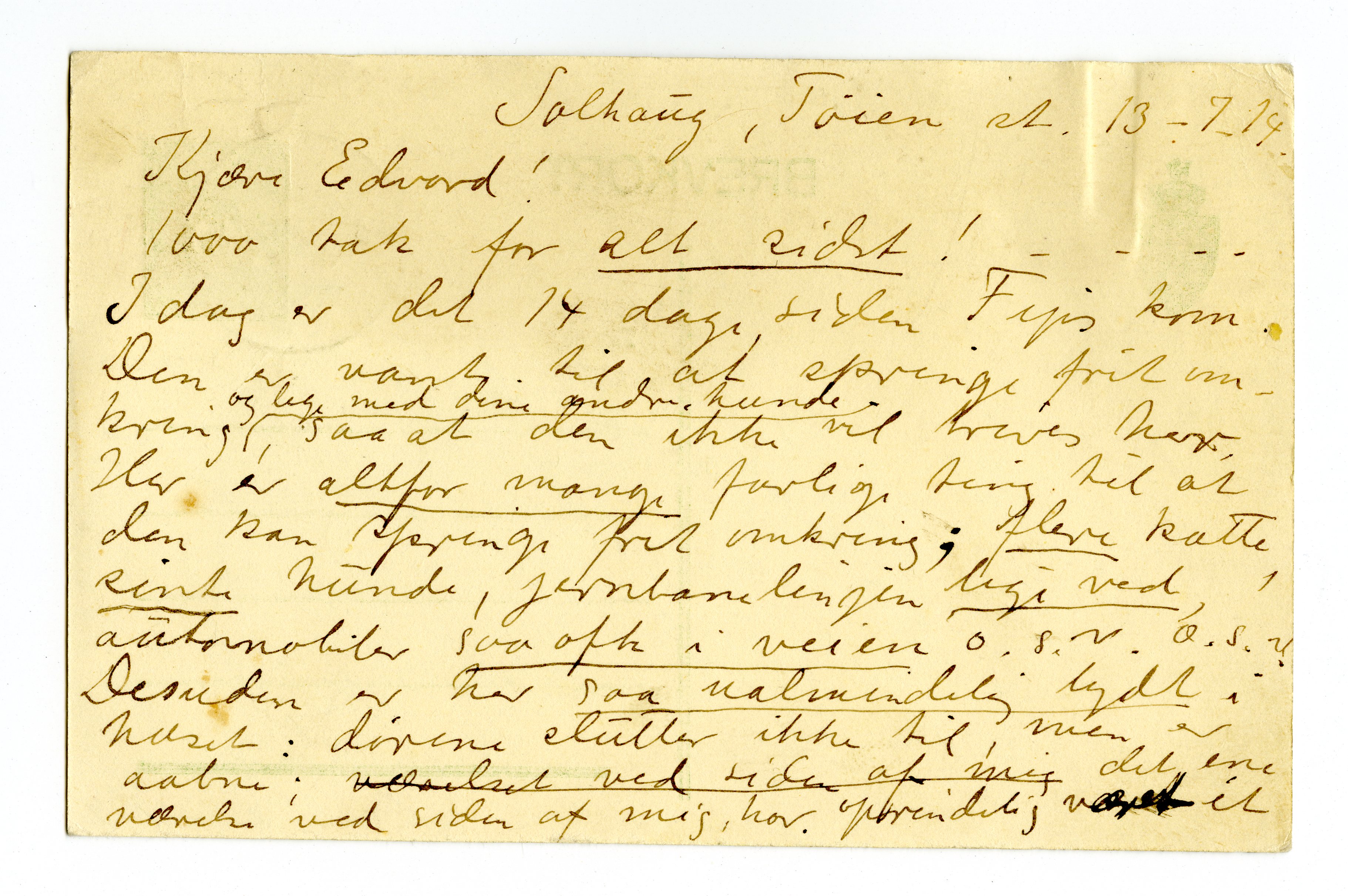 MM K 4997, Munchmuseet. Datert 13.07.1914. Brev fra Laura Munch.