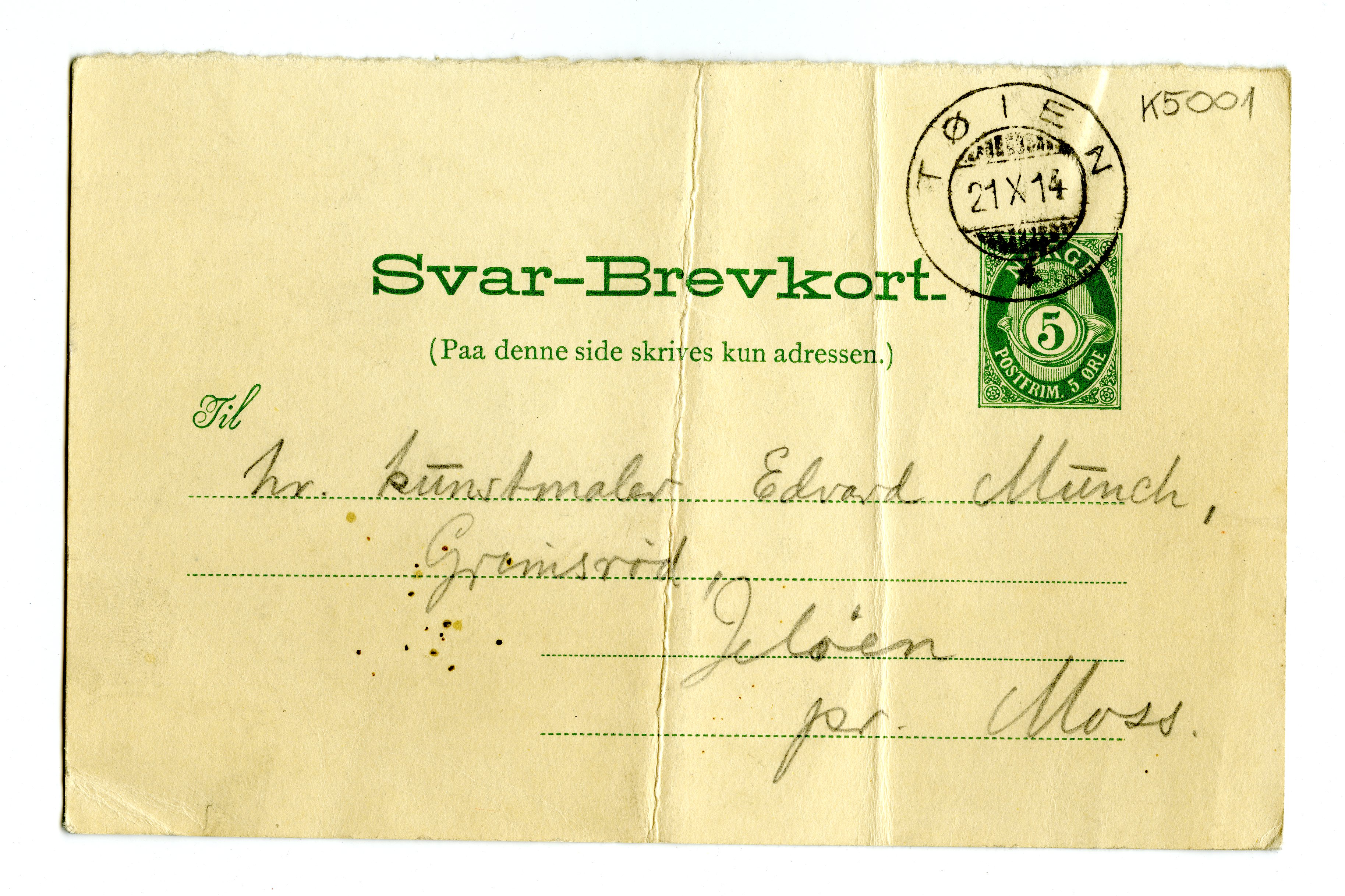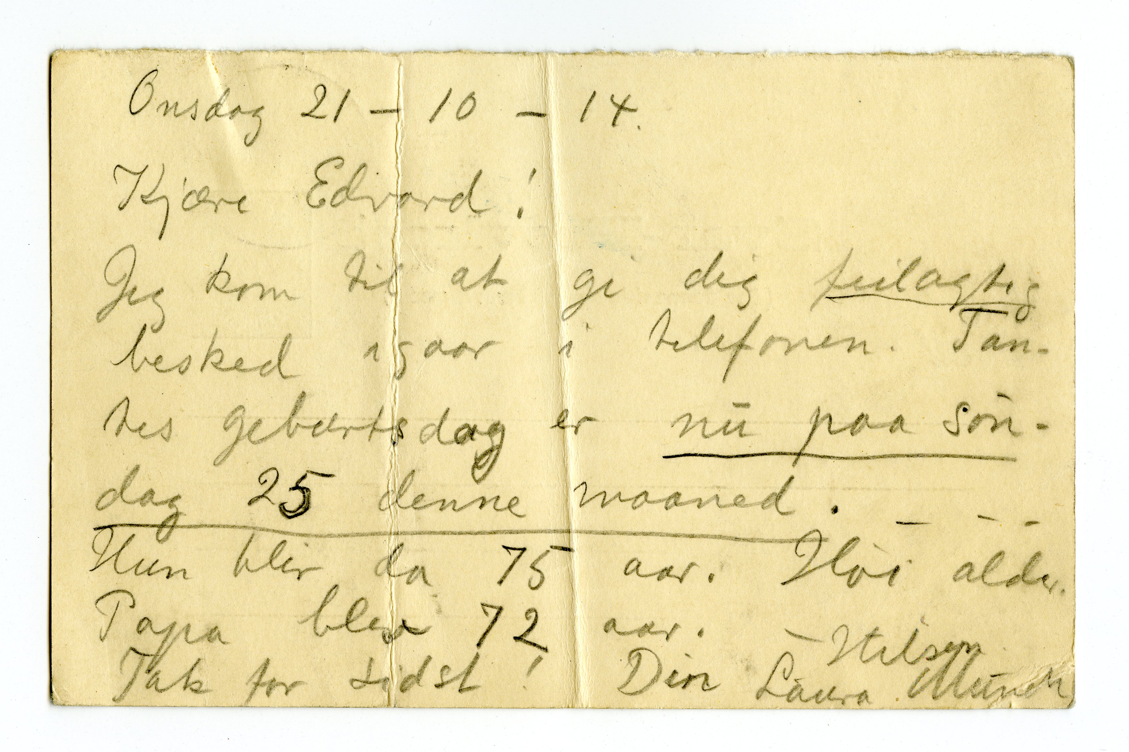 MM K 5001, Munchmuseet. Datert 21.10.1914. Brev fra Laura Munch.