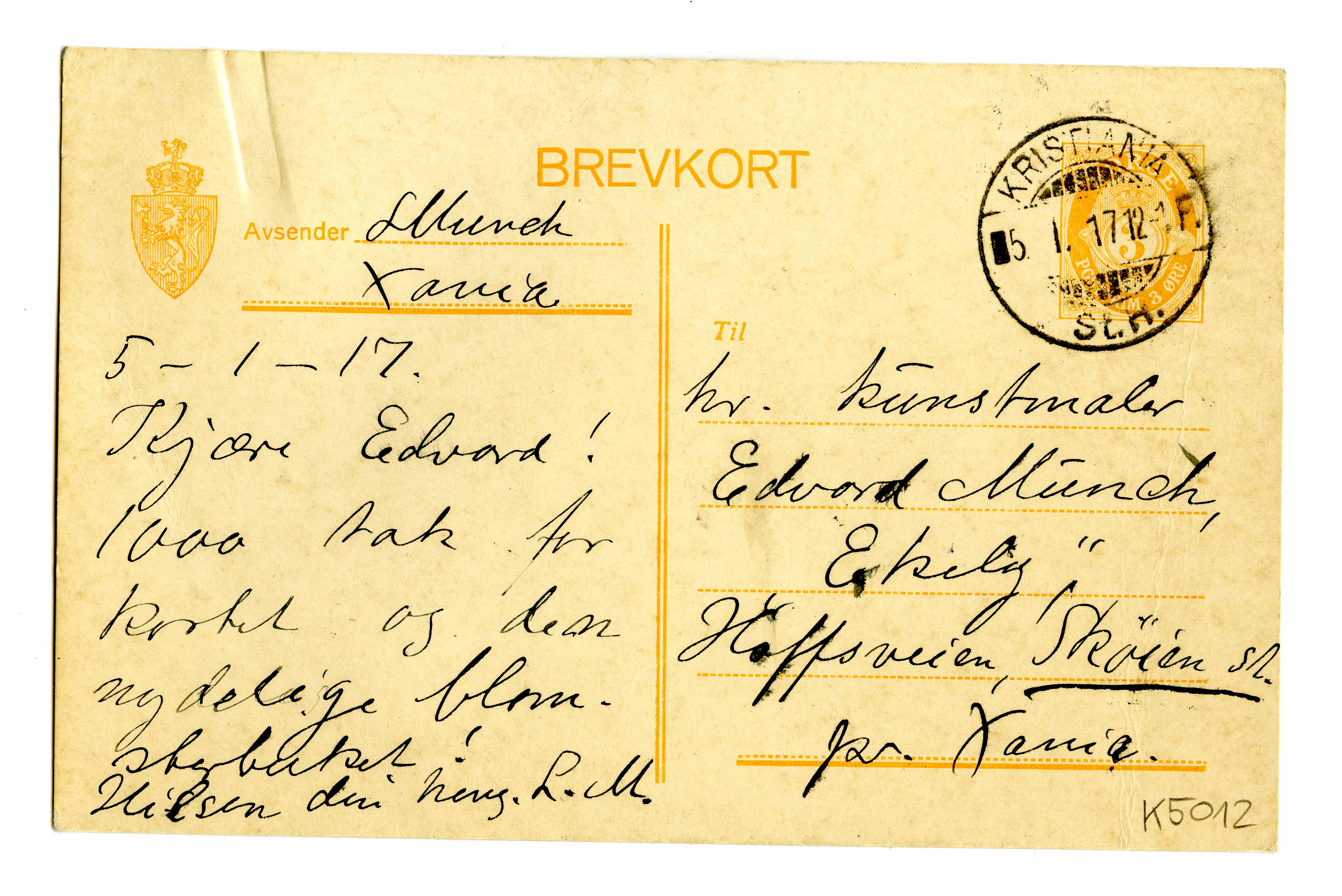 MM K 5012, Munchmuseet. Datert 05.01.1917. Brev fra Laura Munch.