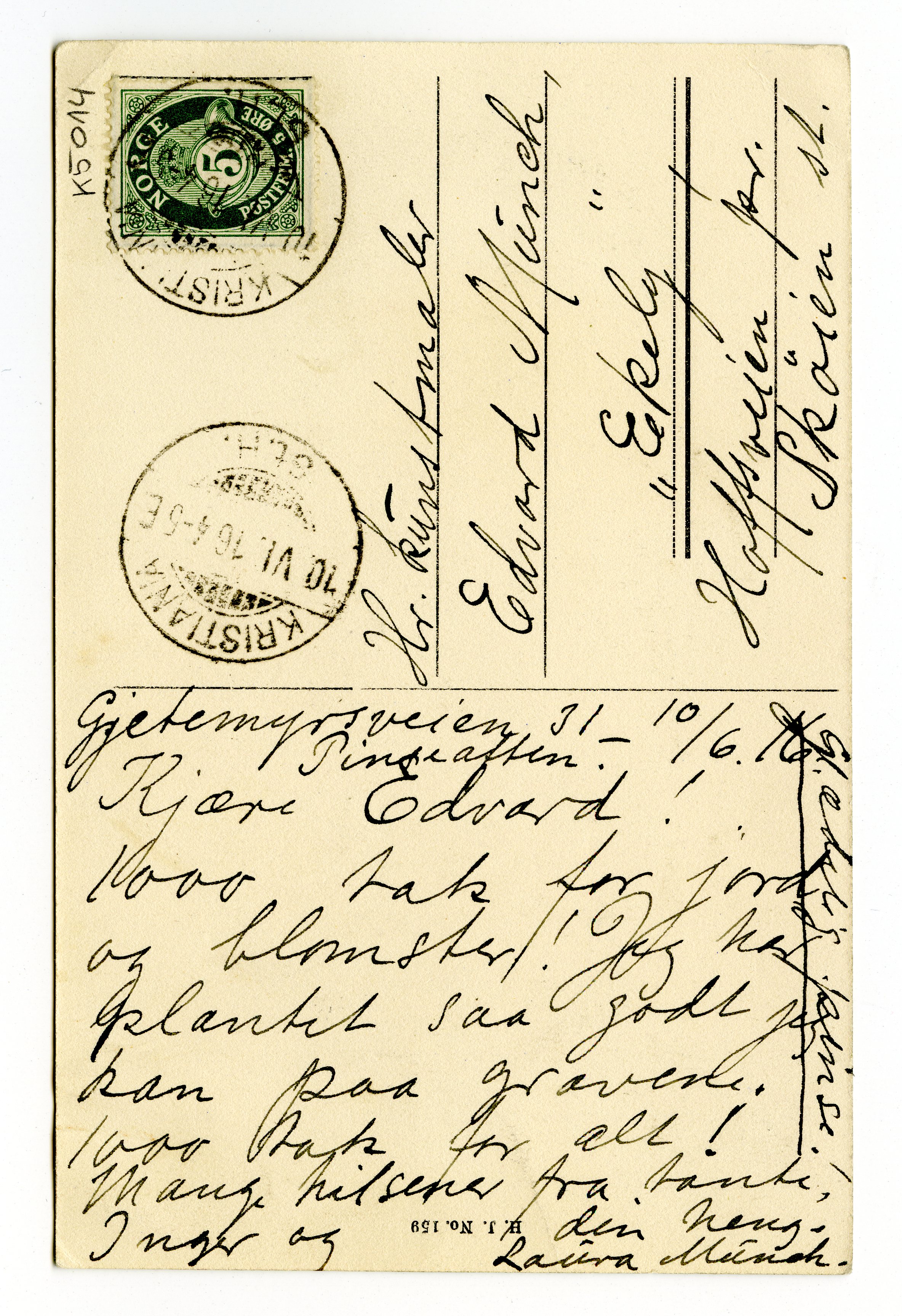MM K 5014, Munchmuseet. Datert 10.06.1916. Brev fra Laura Munch.
