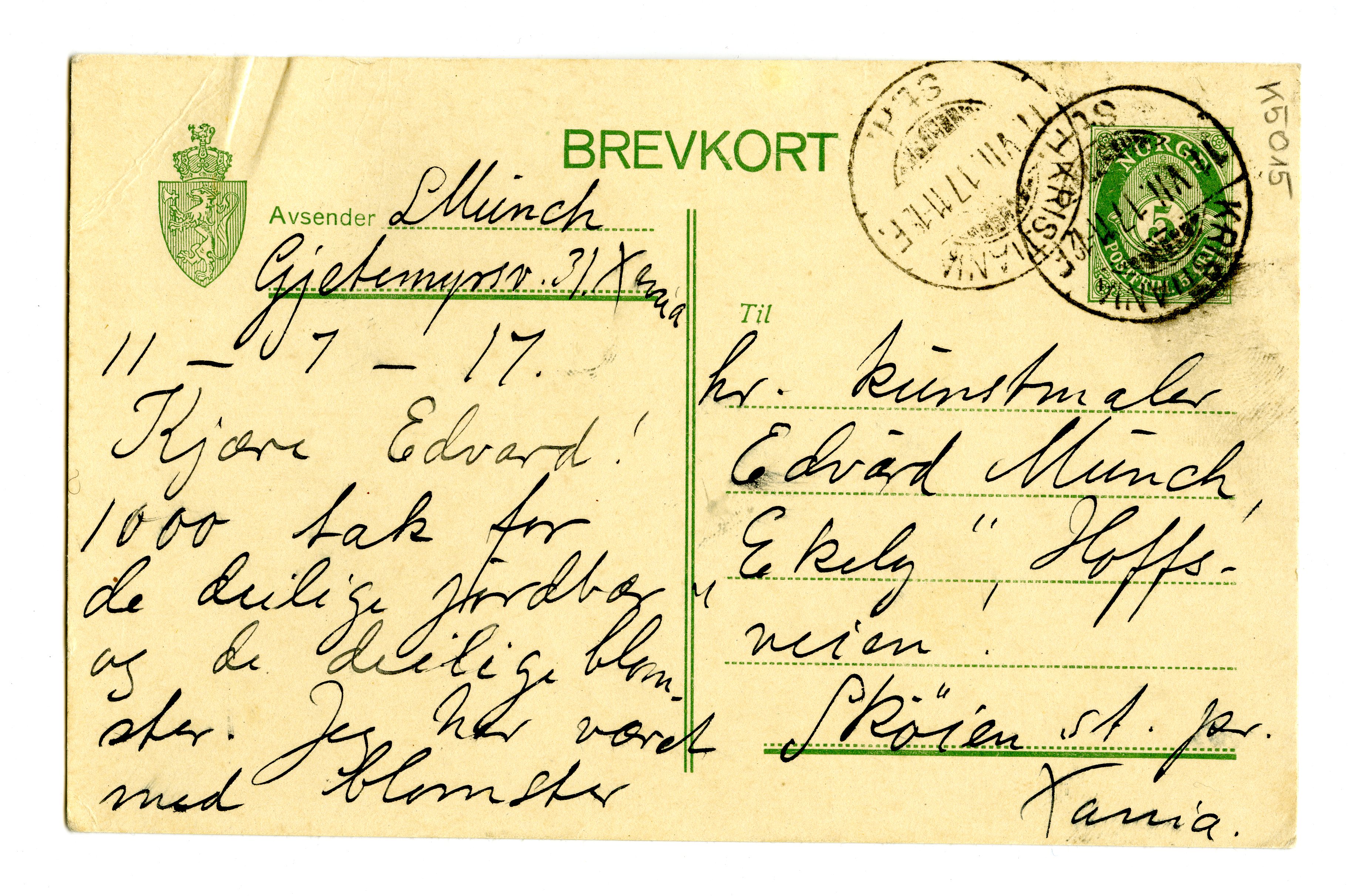 MM K 5015, Munchmuseet. Datert 11.07.1917. Brev fra Laura Munch.