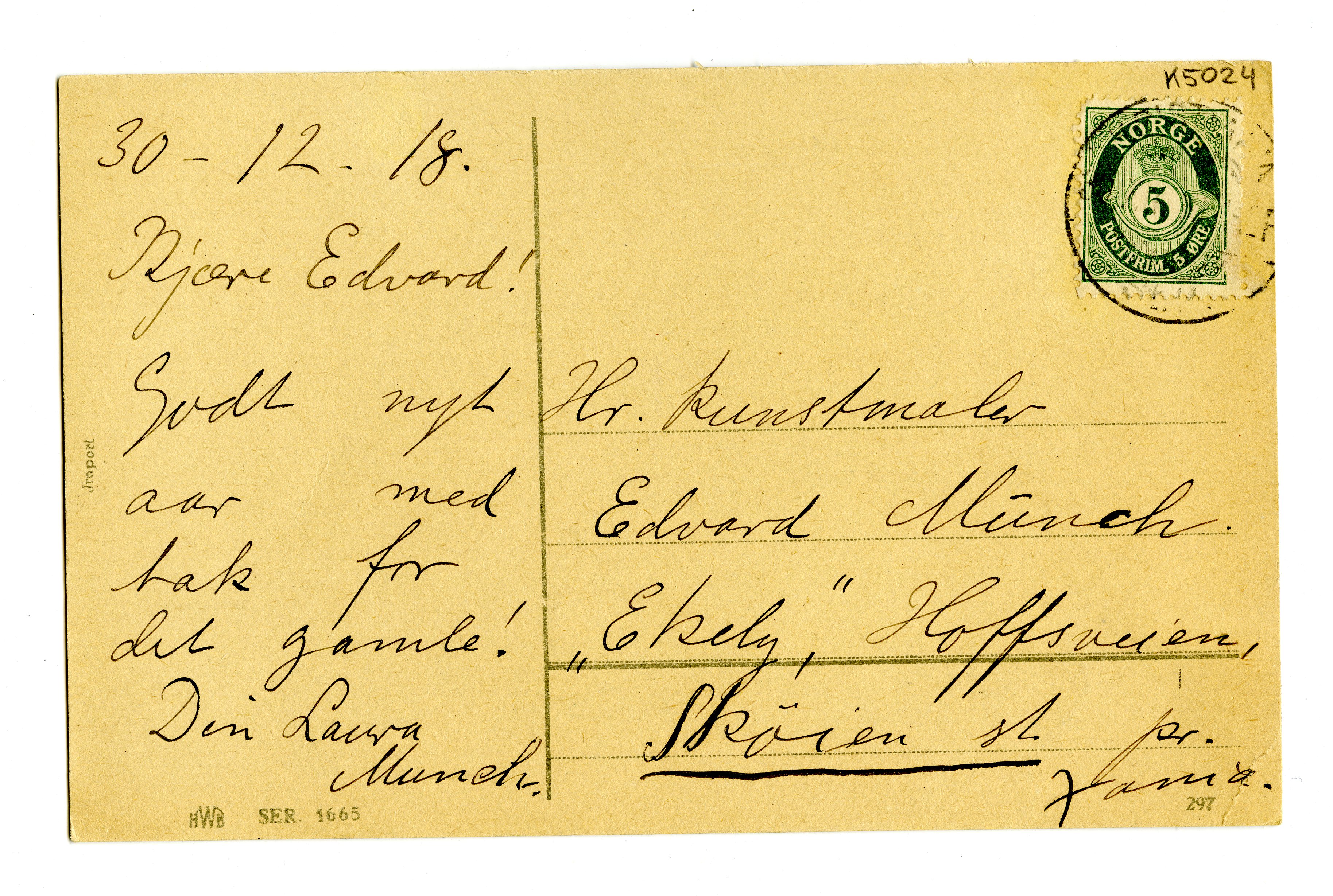 MM K 5024, Munchmuseet. Datert 30.12.1918. Brev fra Laura Munch.