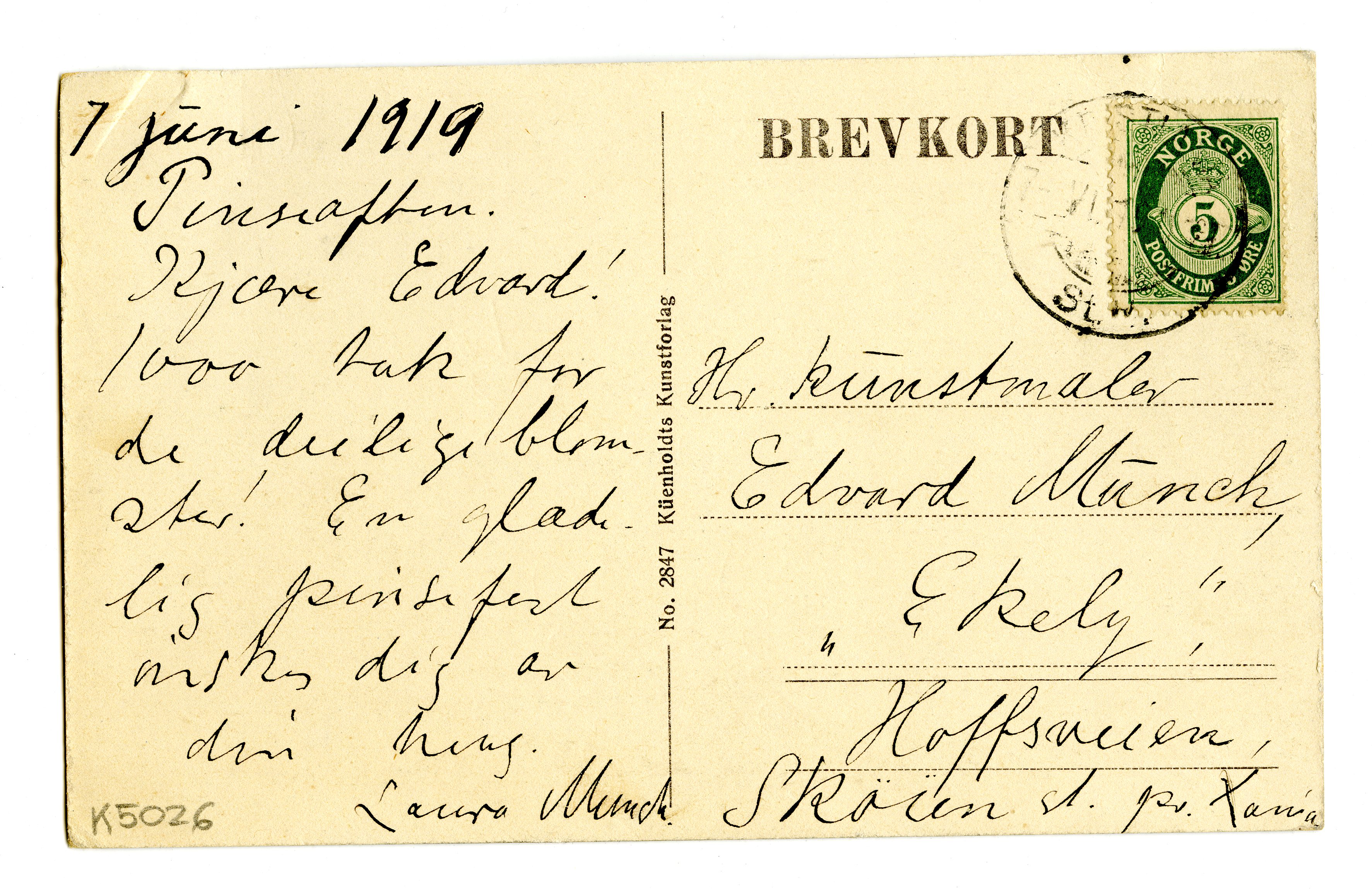 MM K 5026, Munchmuseet. Datert 07.06.1919. Brev fra Laura Munch.