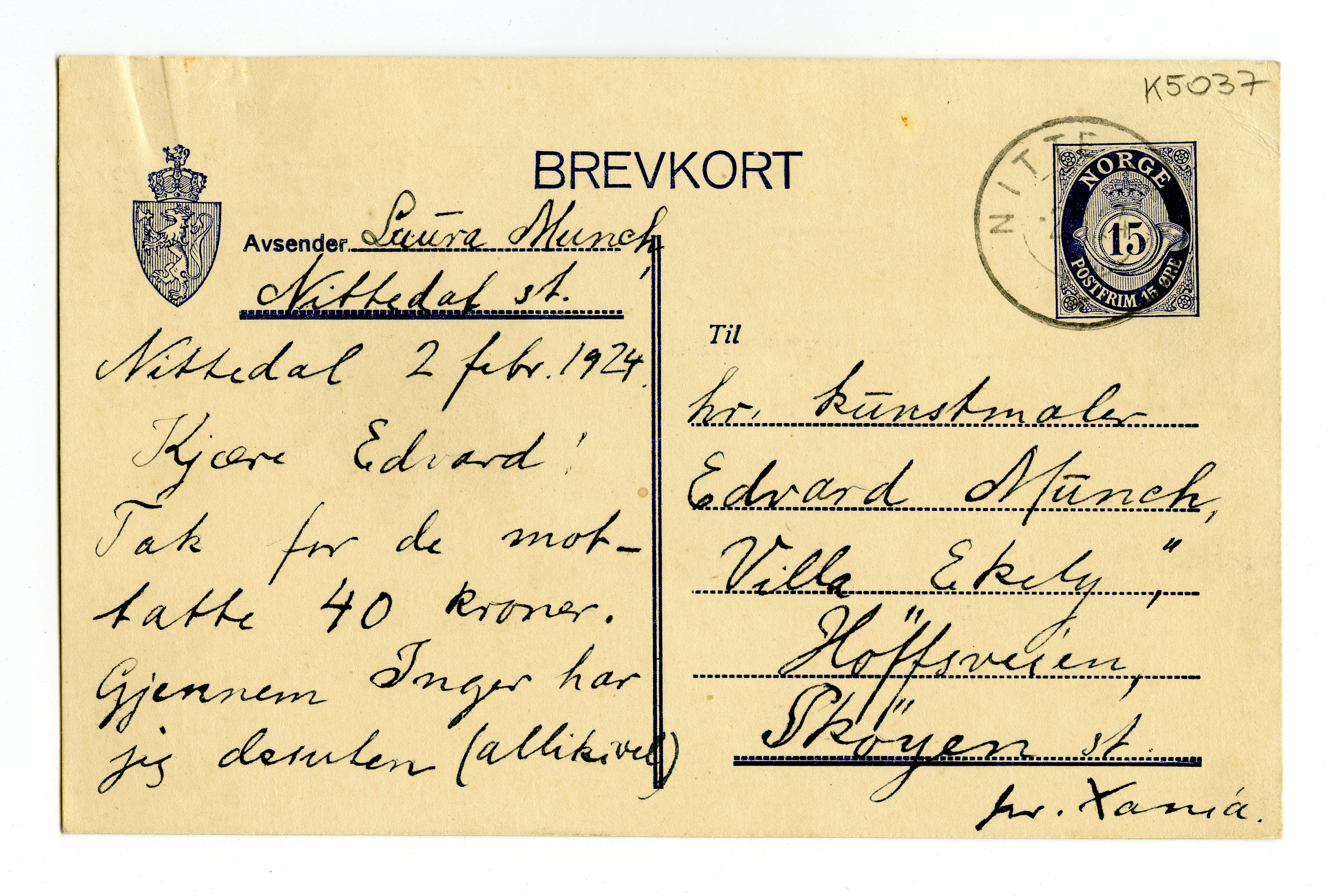 MM K 5037, Munchmuseet. Datert 02.02.1924. Brev fra Laura Munch.