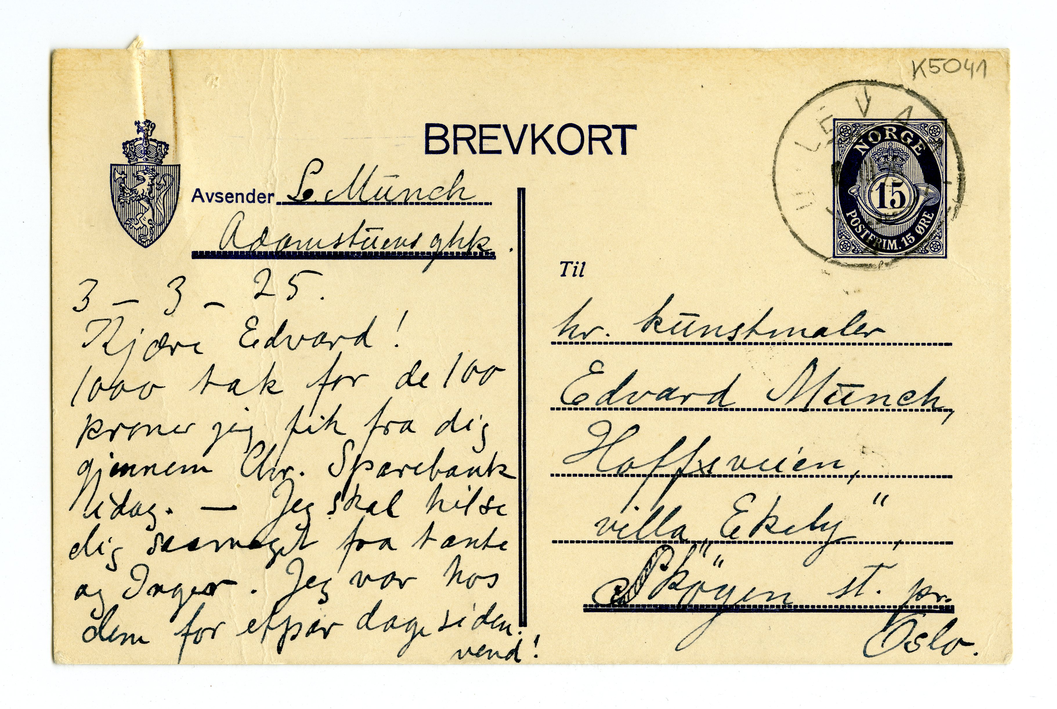 MM K 5041, Munchmuseet. Datert 03.03.1925. Brev fra Laura Munch.
