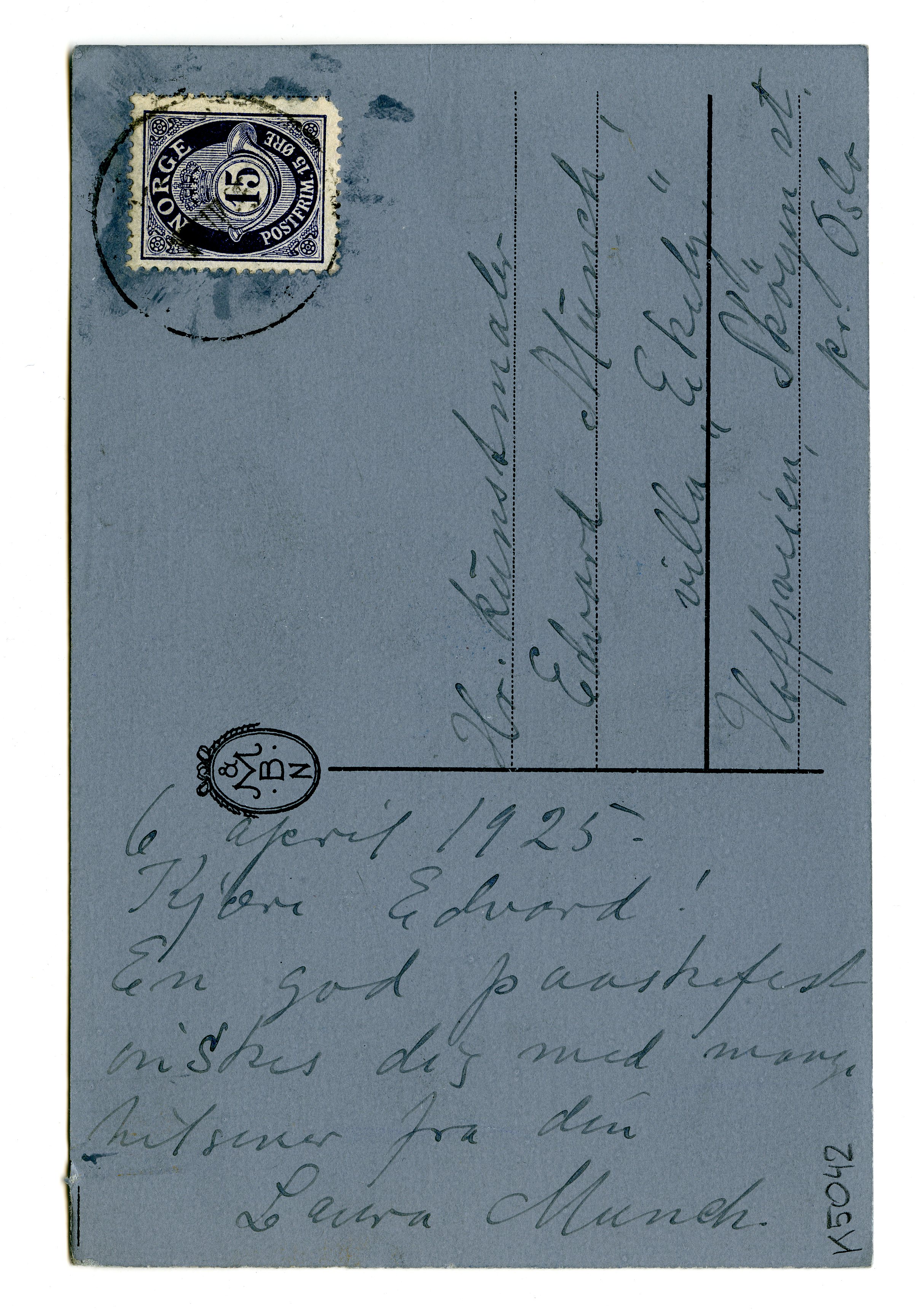 MM K 5042, Munchmuseet. Datert 06.04.1925. Brev fra Laura Munch.