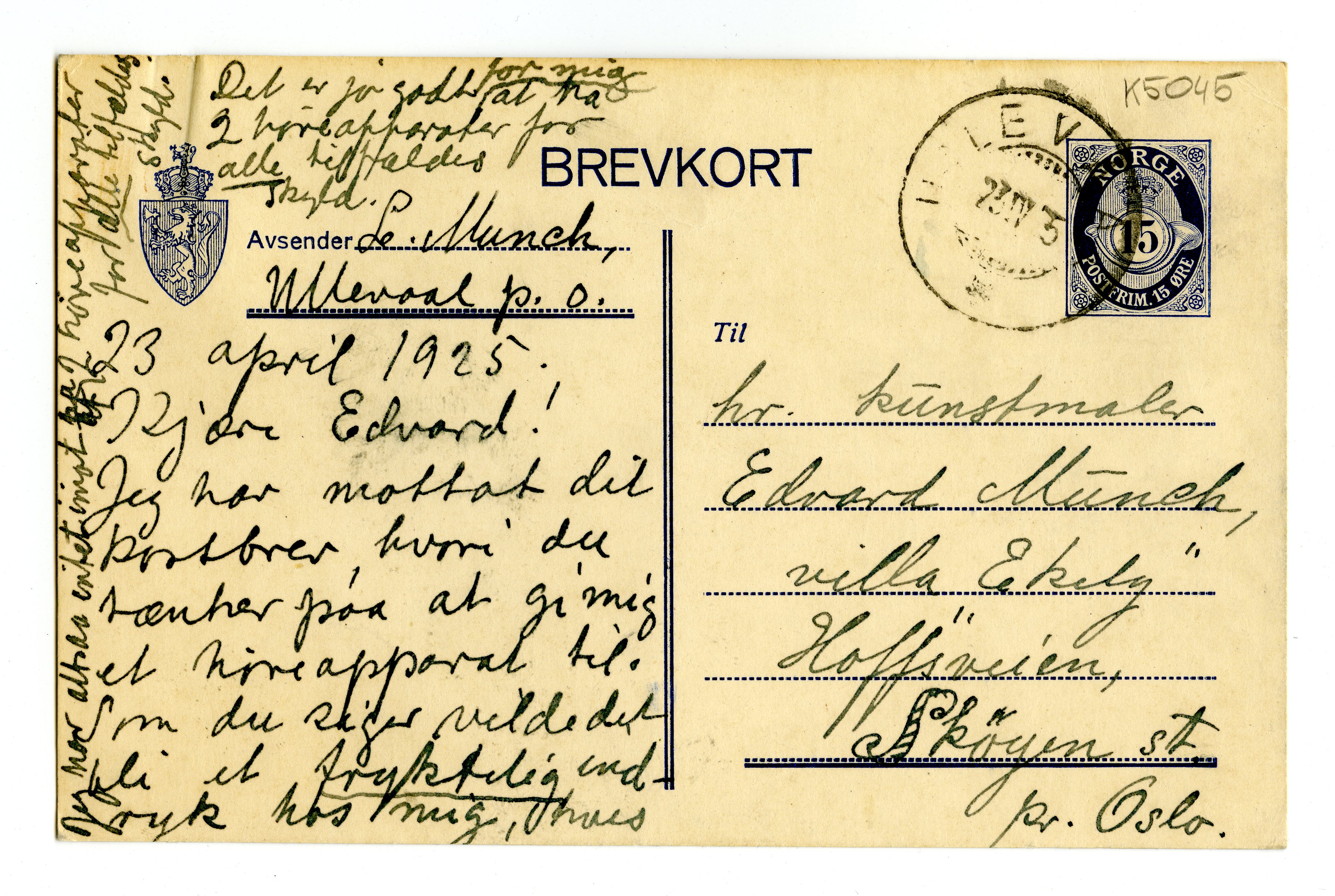 MM K 5045, Munchmuseet. Datert 23.04.1925. Brev fra Laura Munch.