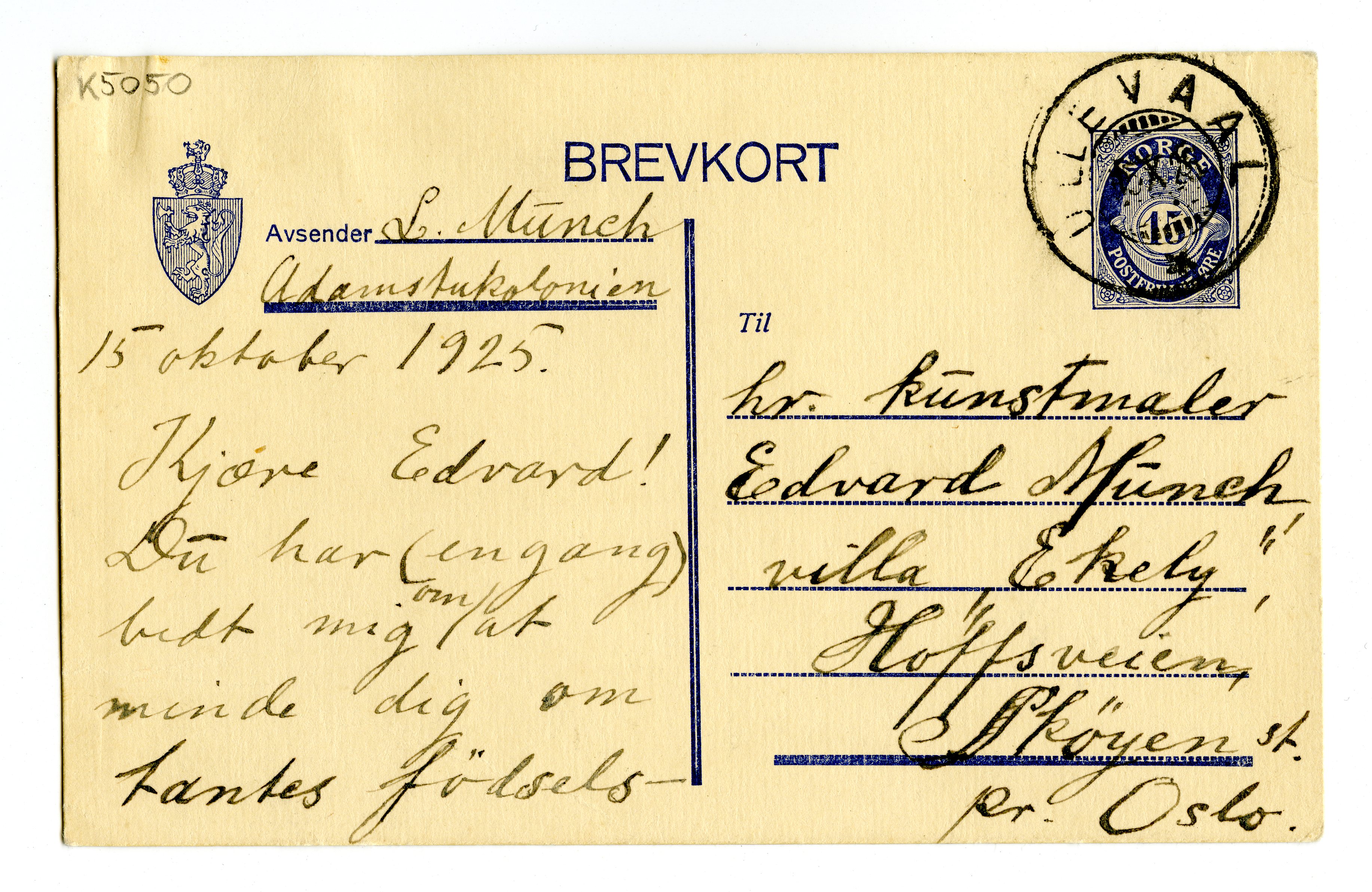 MM K 5050, Munchmuseet. Datert 15.10.1925. Brev fra Laura Munch.