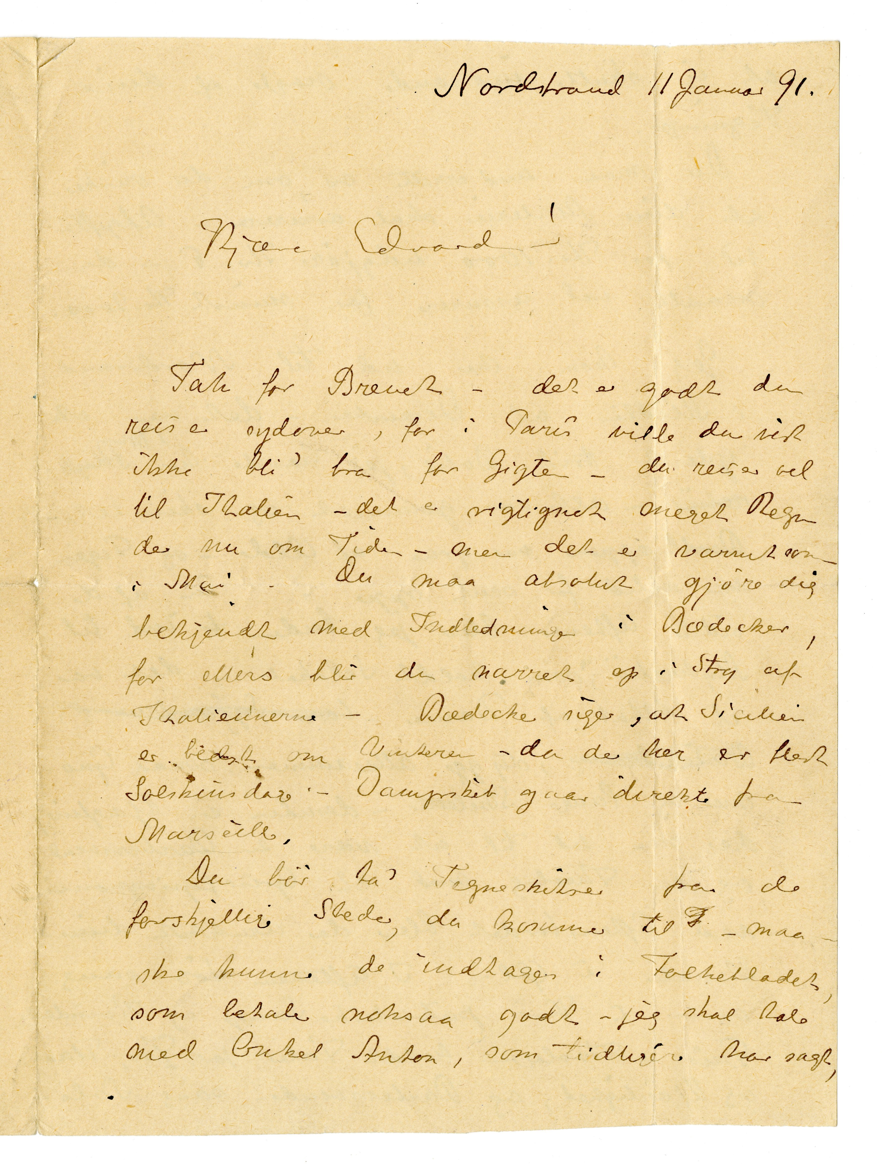 MM K 5056, Munchmuseet. Datert 11.01.1891. Brev fra Peter Andreas Munch.
