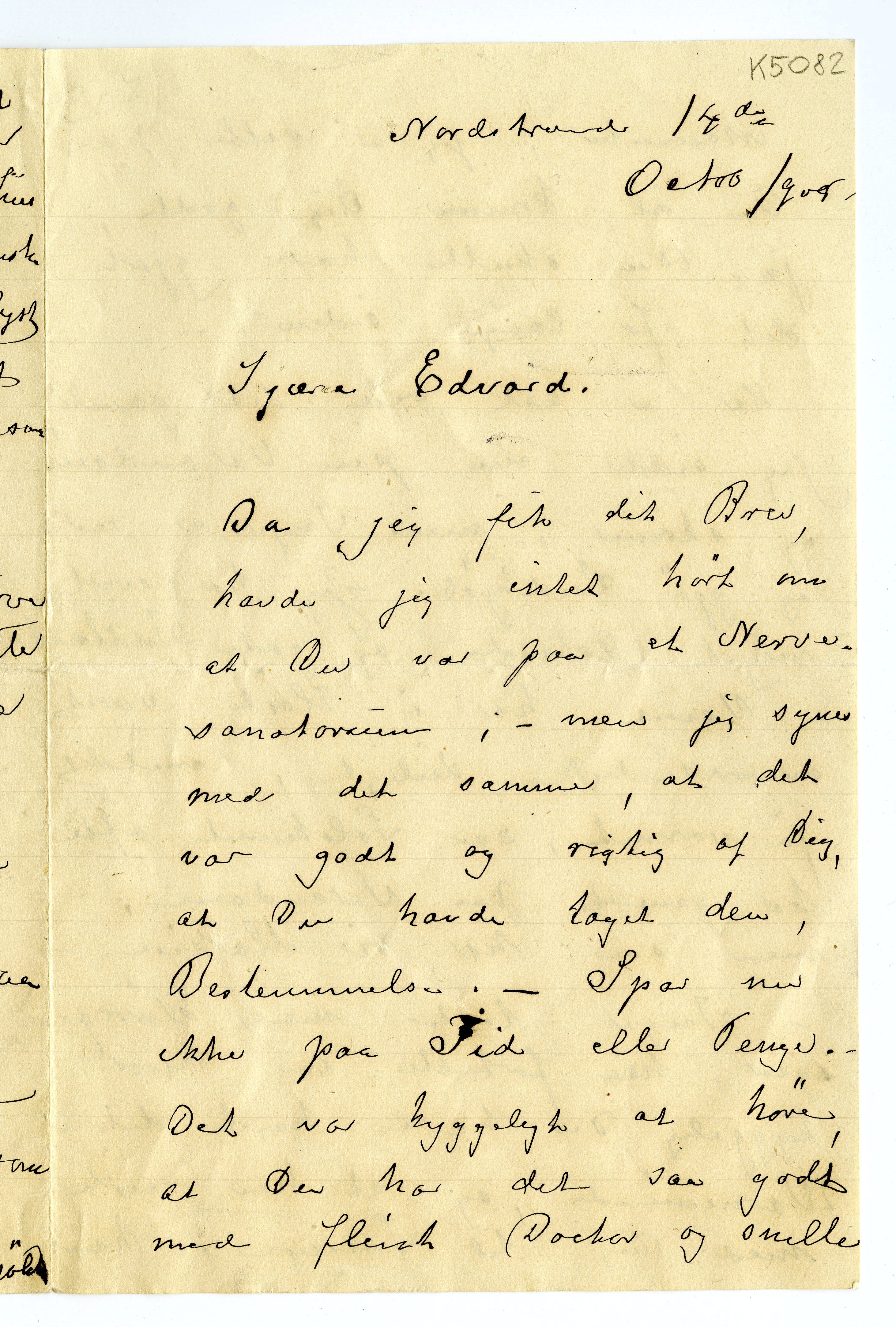MM K 5082, Munchmuseet. Datert 14.10.1908. Brev fra Karen Bjølstad.