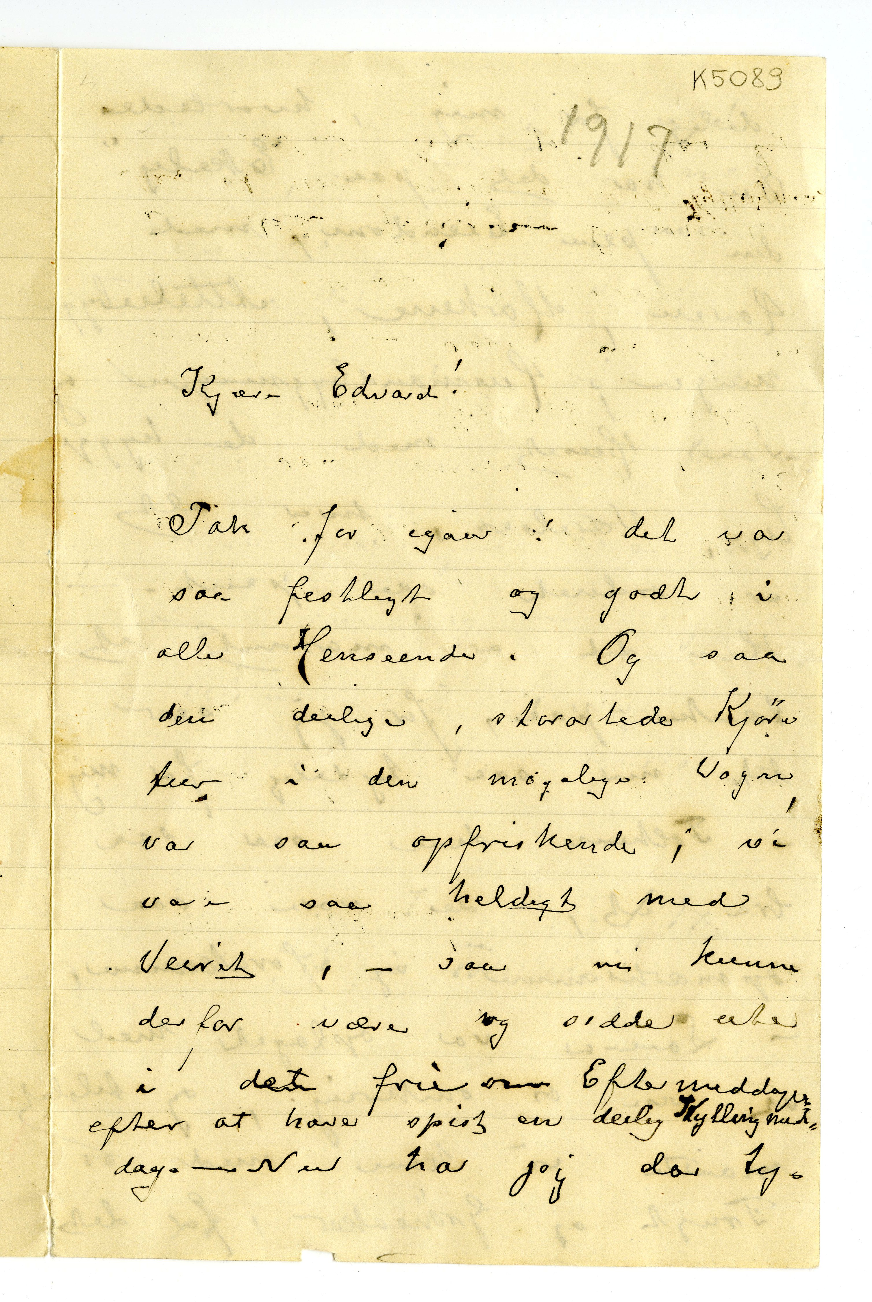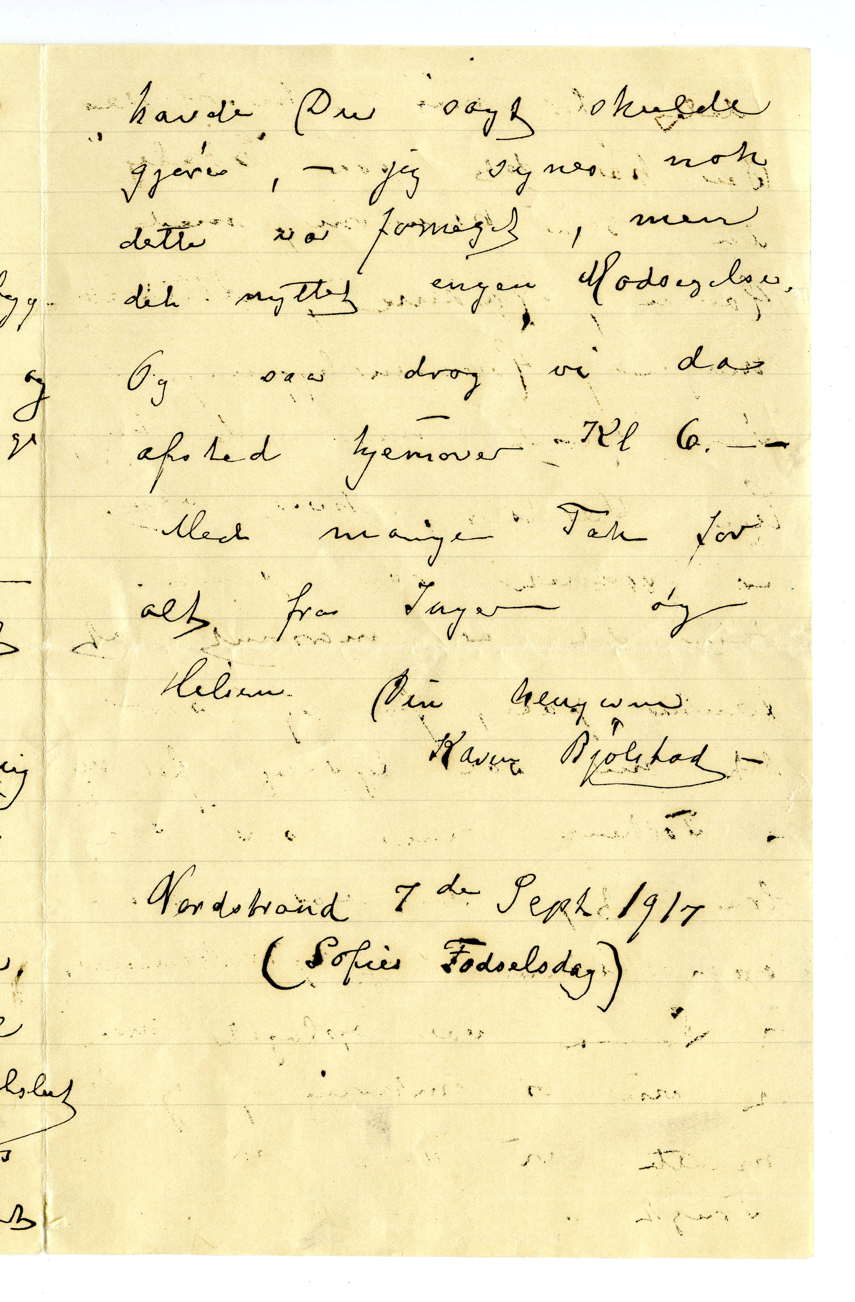 MM K 5089, Munchmuseet. Datert 07.09.1917. Brev fra Karen Bjølstad.