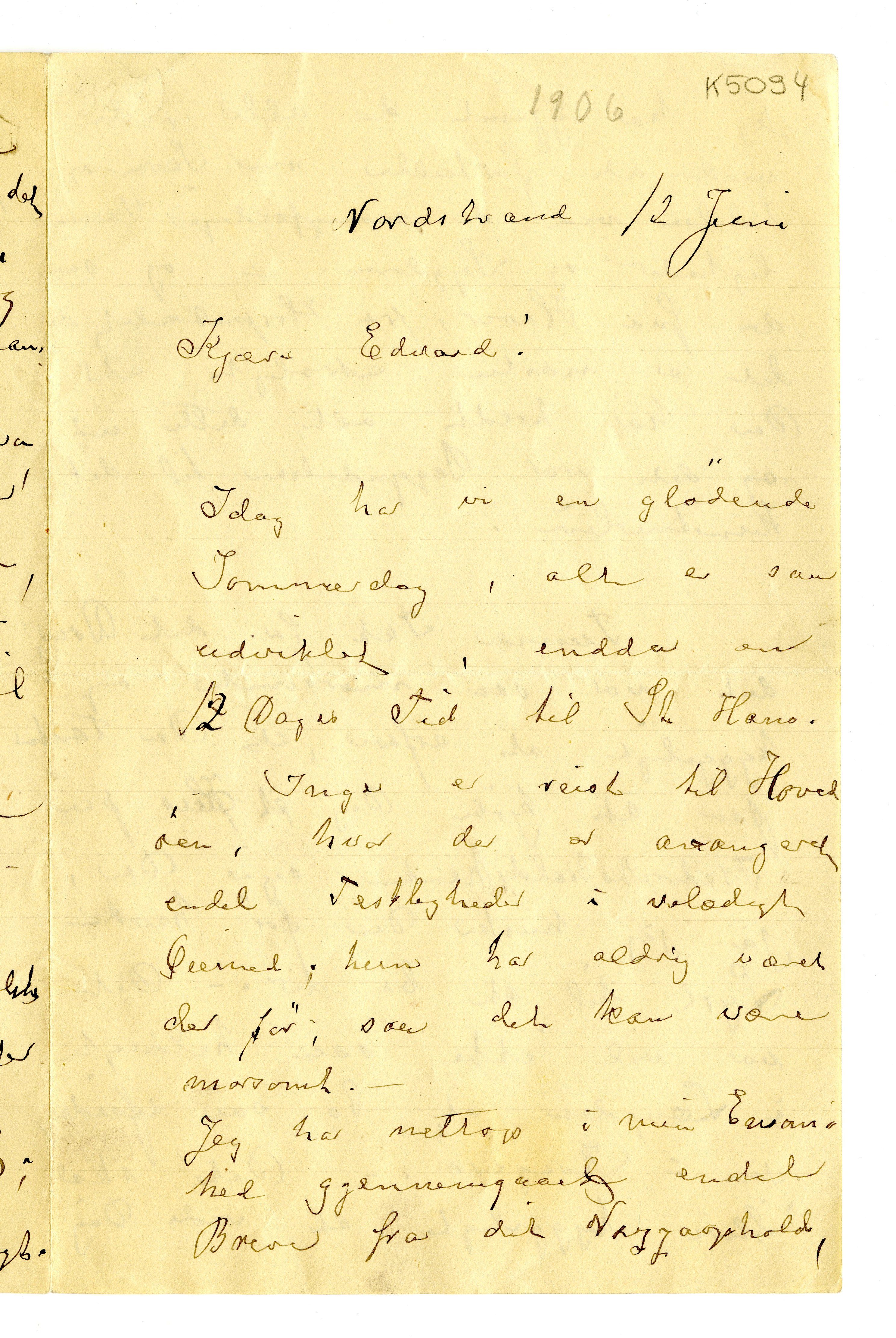 MM K 5094, Munchmuseet. Datert 12.06.1910. Brev fra Karen Bjølstad.