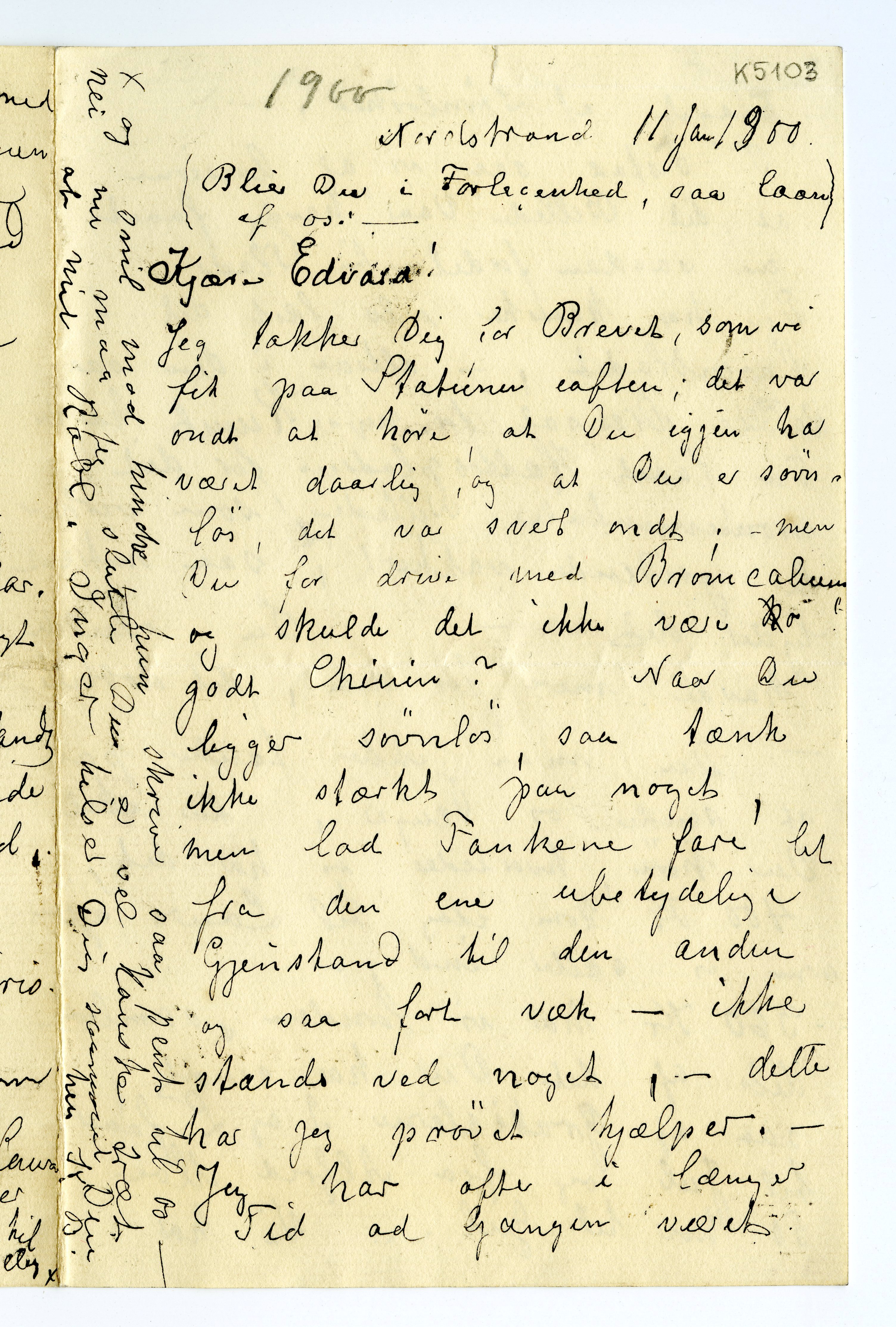 MM K 5103, Munchmuseet. Datert 11.01.1900. Brev fra Karen Bjølstad.