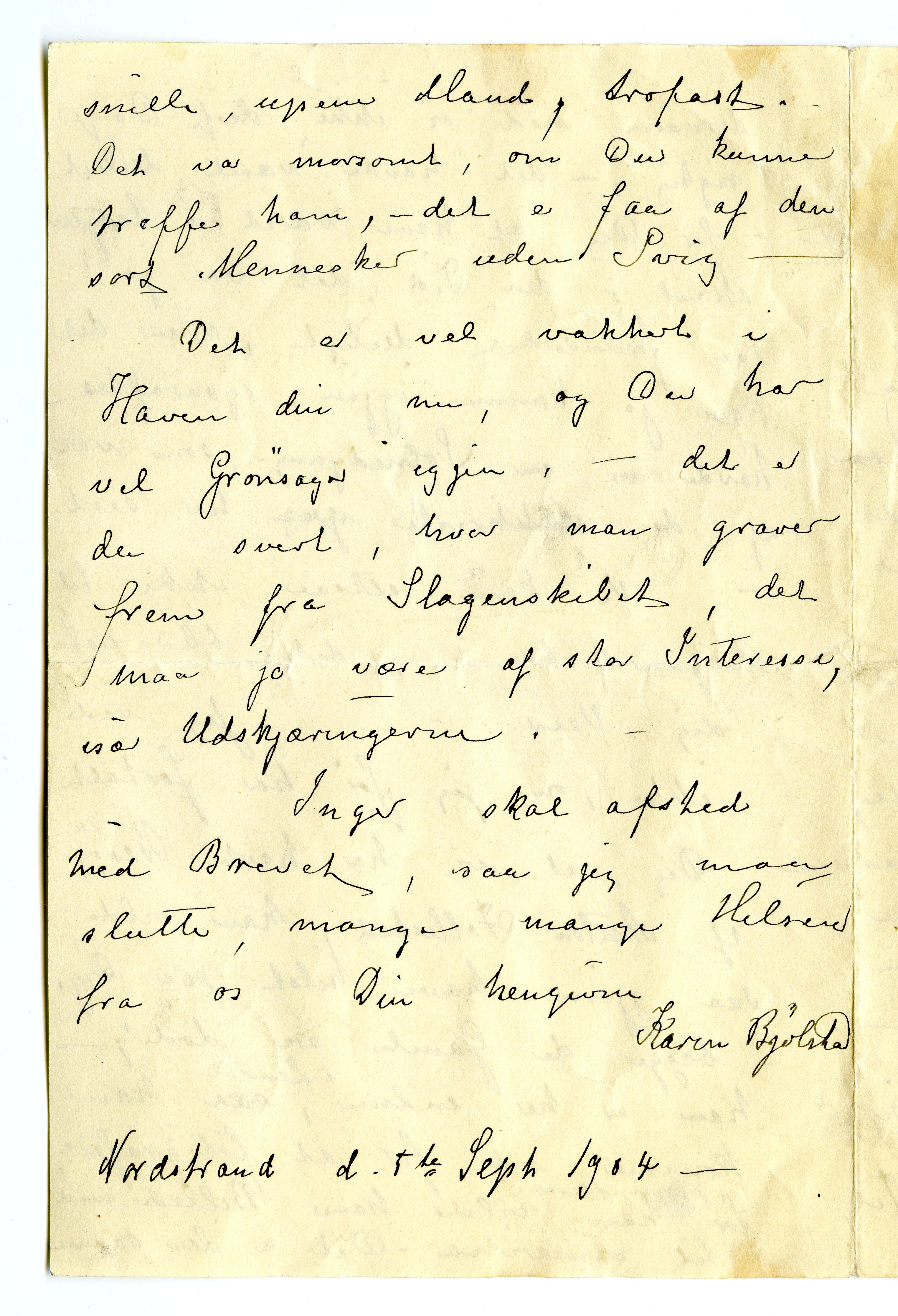 MM K 5108, Munchmuseet. Datert 05.09.1904. Brev fra Karen Bjølstad.