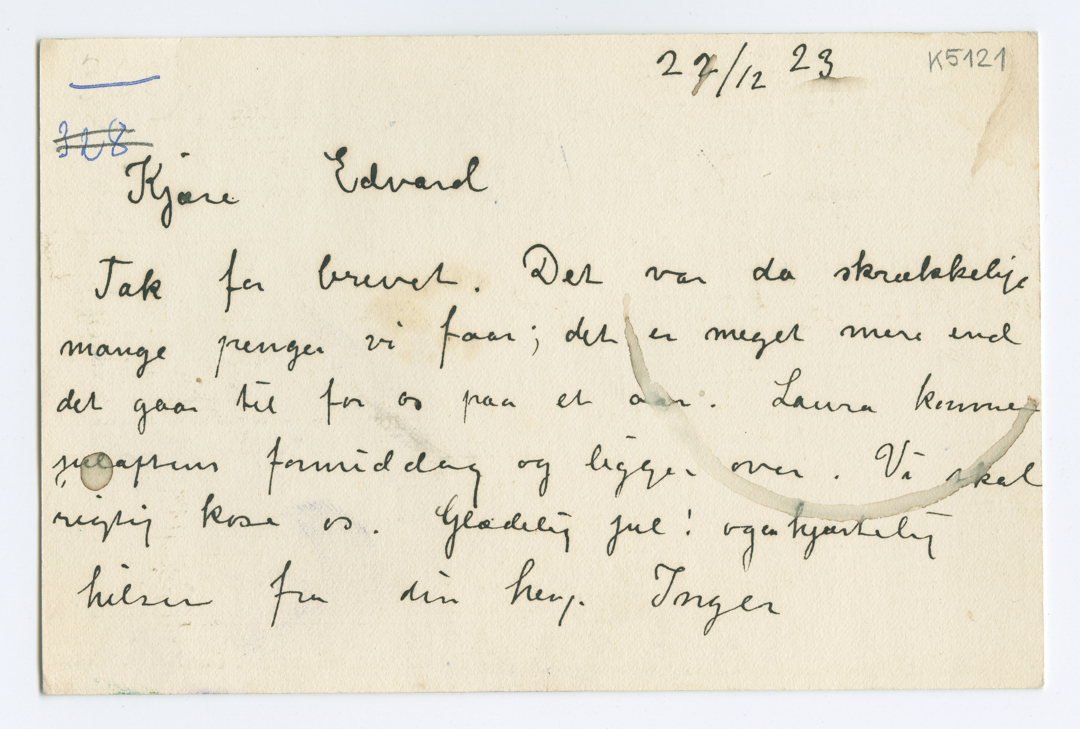 MM K 5121, Munchmuseet. Datert 22.12.1923. Brev fra Inger Munch.