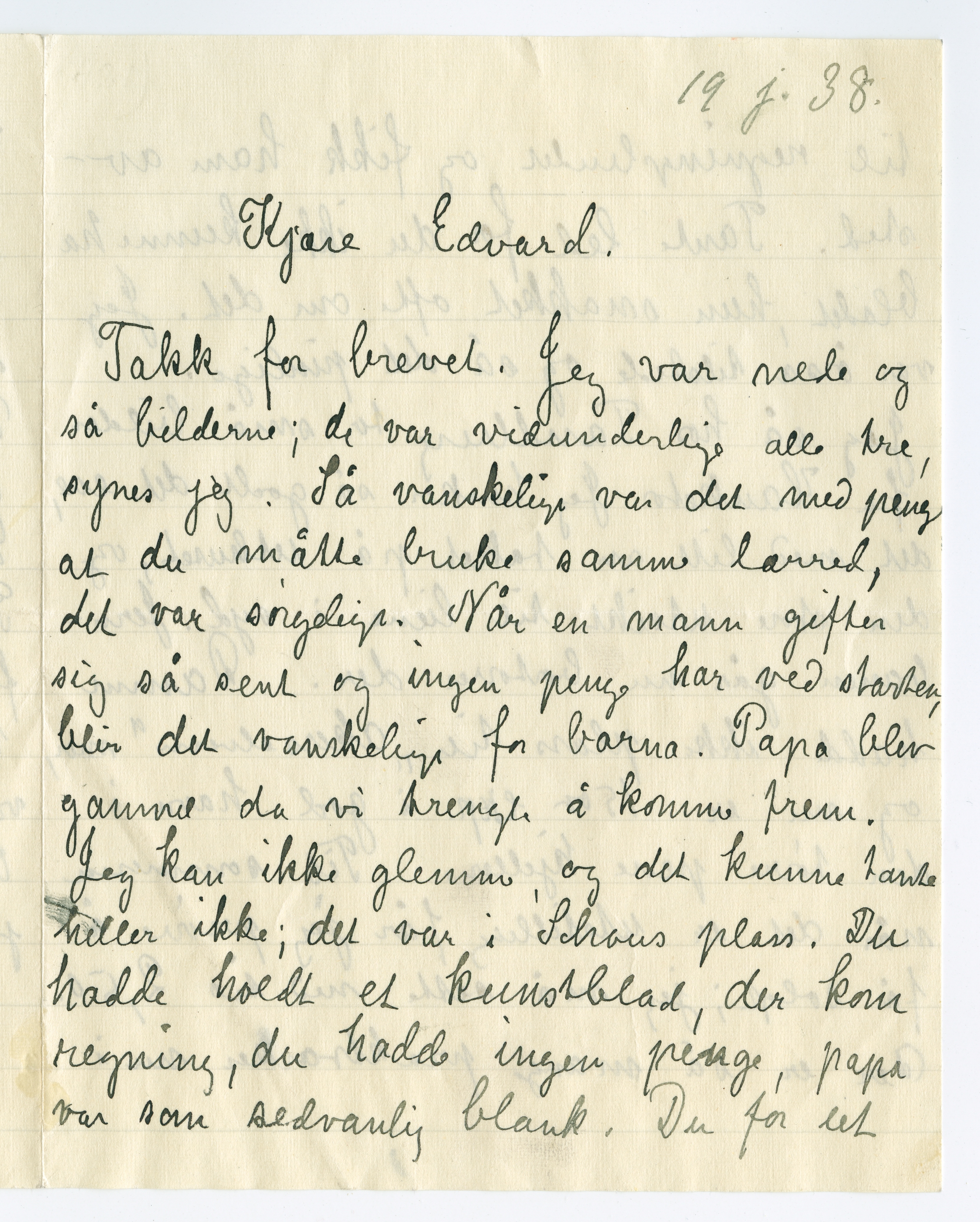 MM K 5129, Munchmuseet. Datert 19.01.1938. Brev fra Inger Munch.