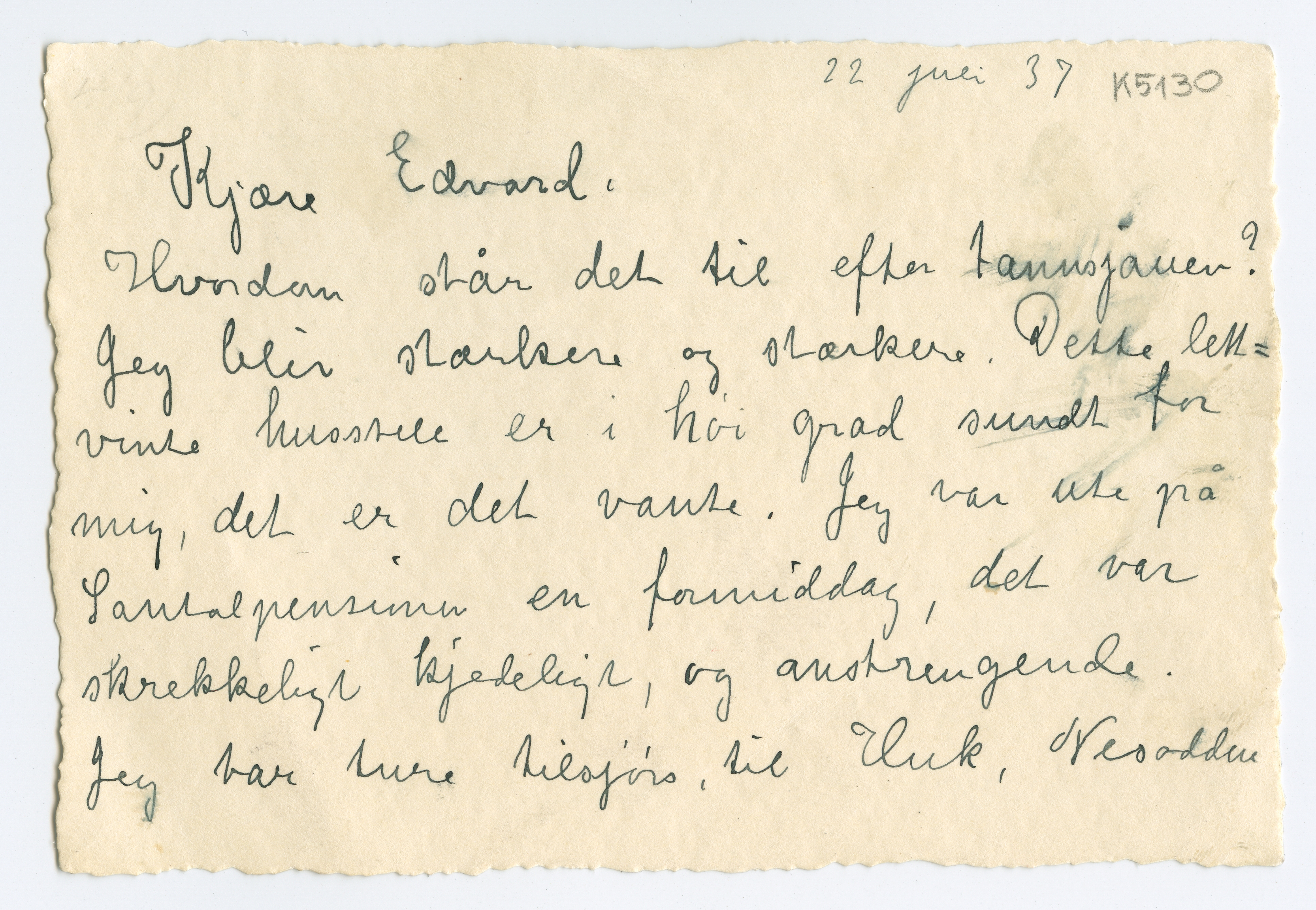 MM K 5130, Munchmuseet. Datert 22.07.1937. Brev fra Inger Munch.