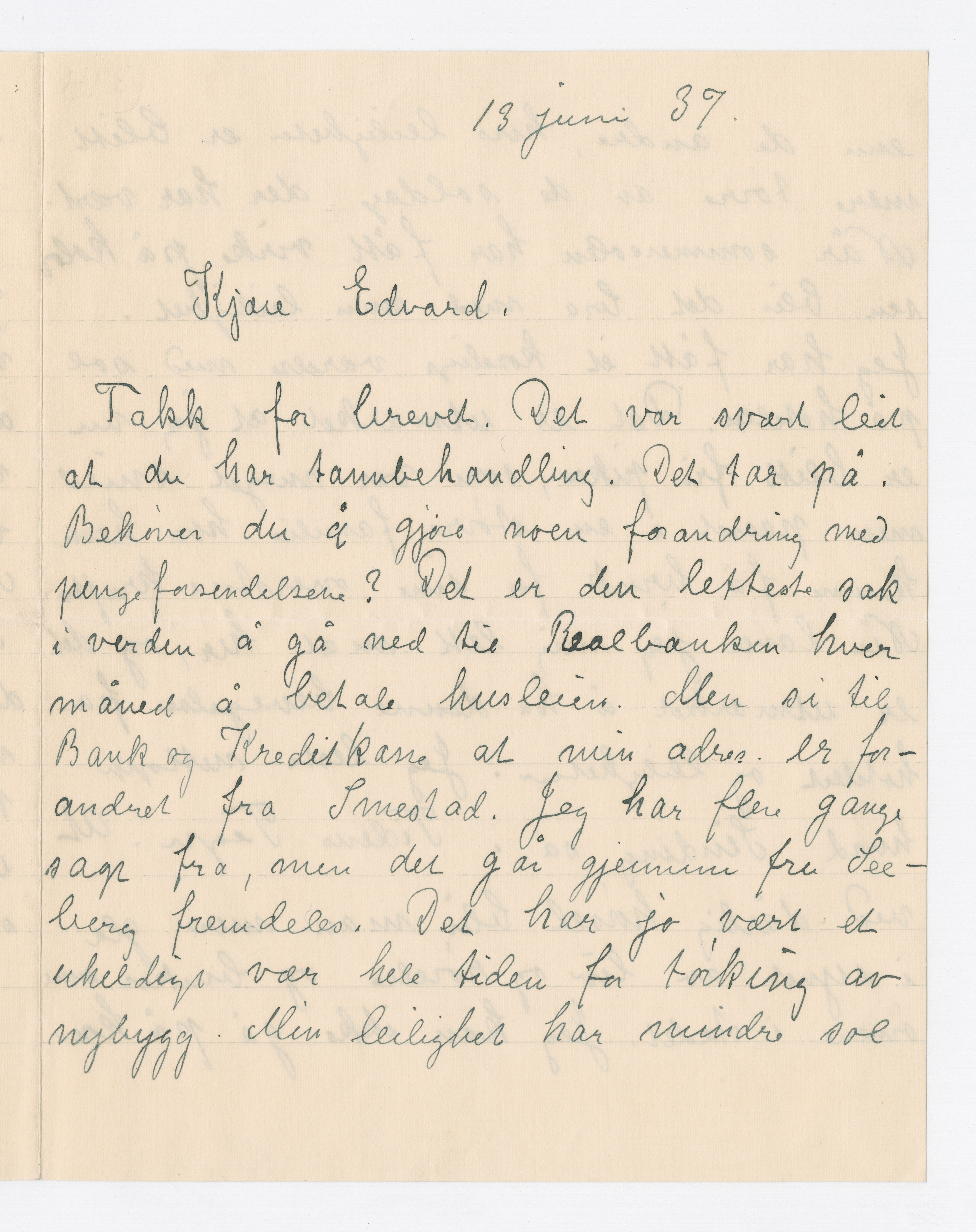 MM K 5131, Munchmuseet. Datert 13.06.1937. Brev fra Inger Munch.