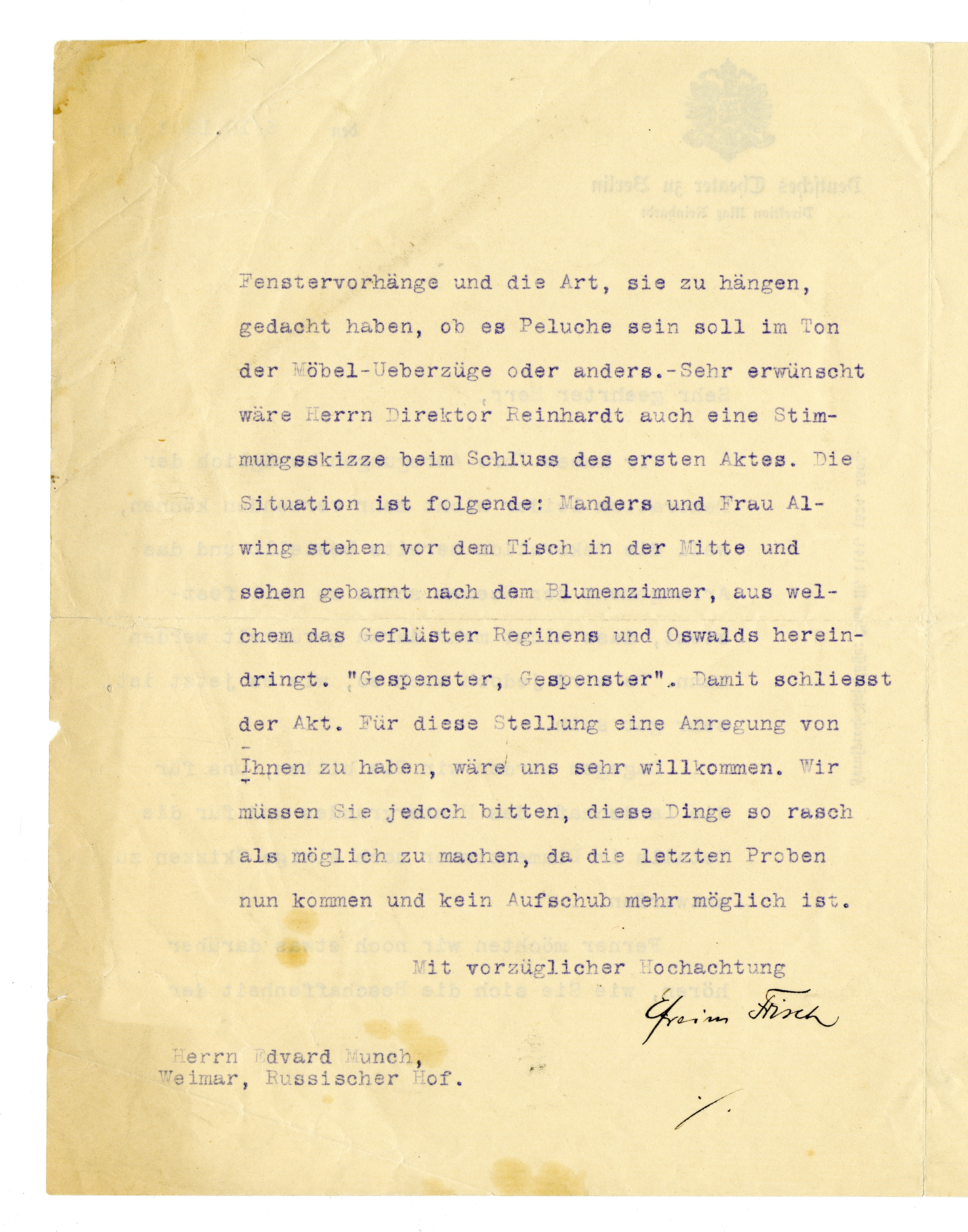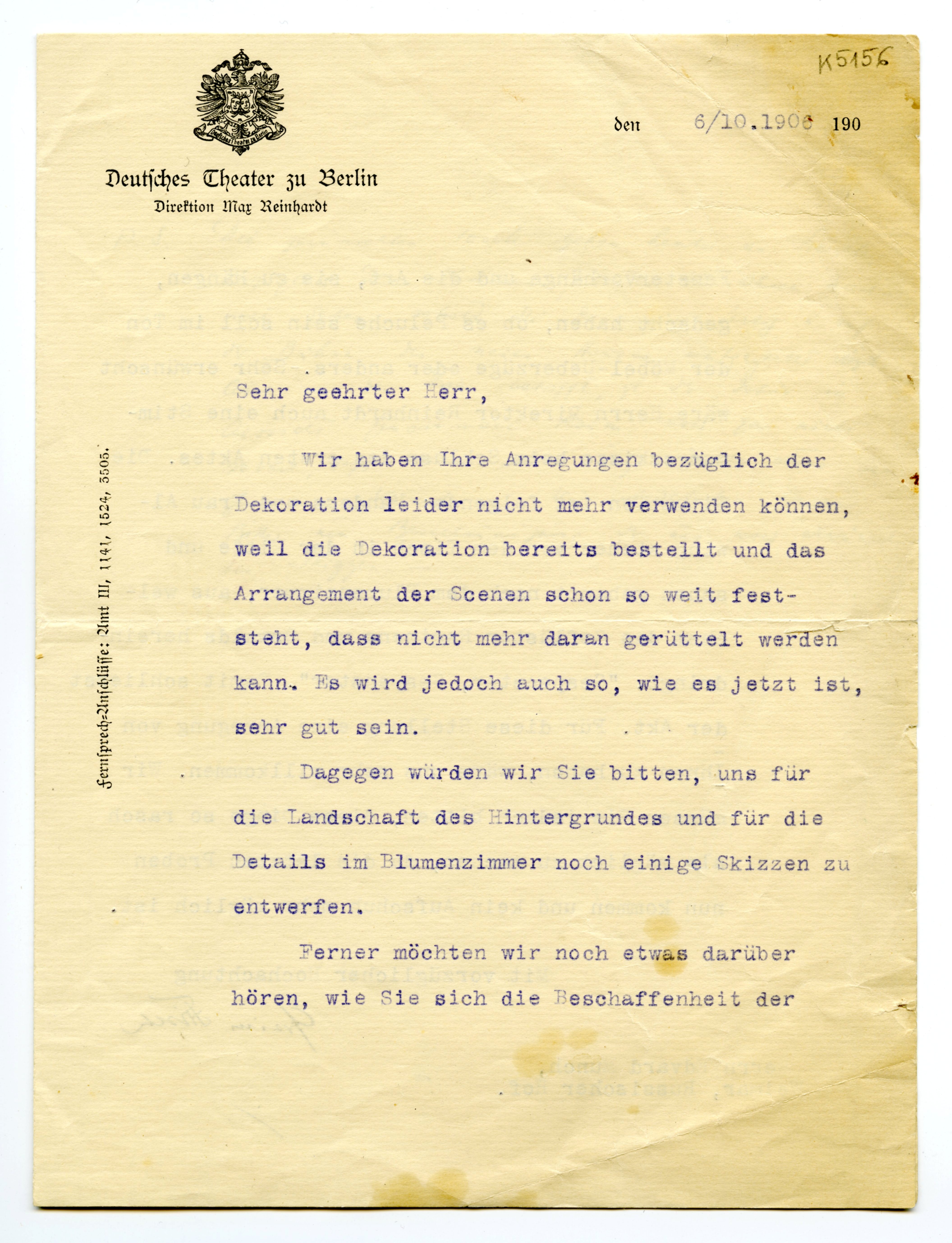 MM K 5156, Munchmuseet. Datert 06.10.1906. Brev fra Deutsches Theater zu Berlin.