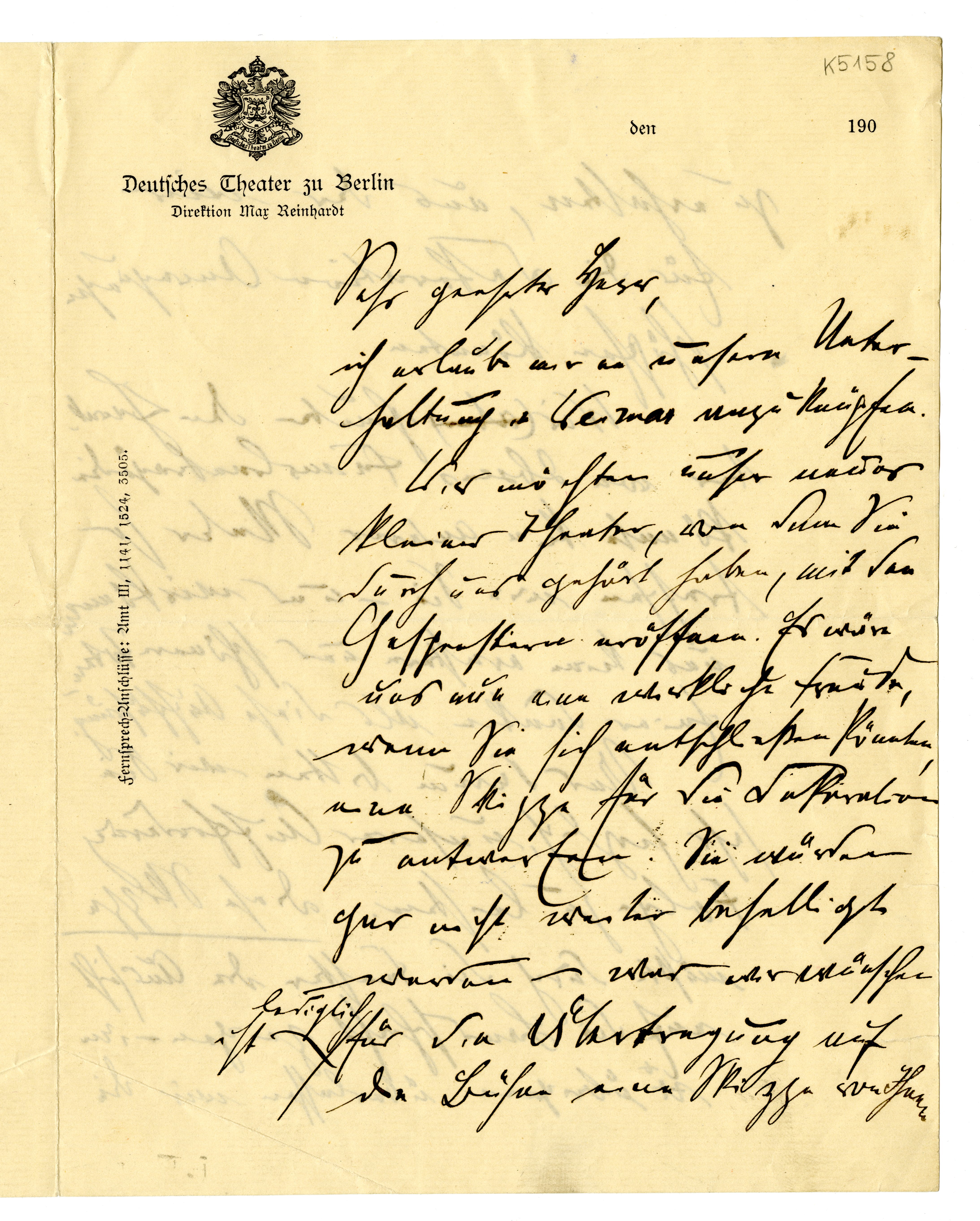 MM K 5158, Munchmuseet. Ikke datert. Brev fra Deutsches Theater zu Berlin.