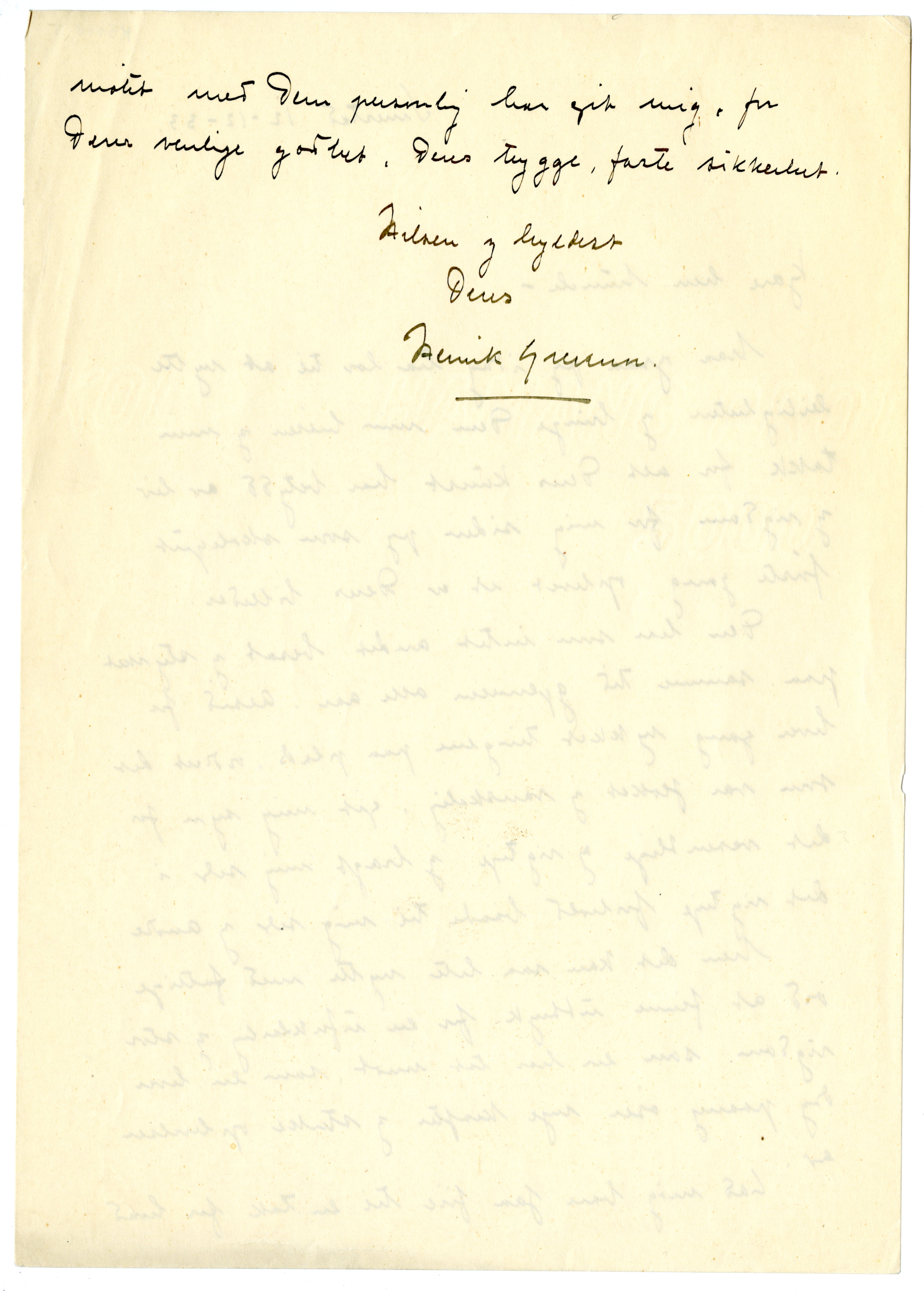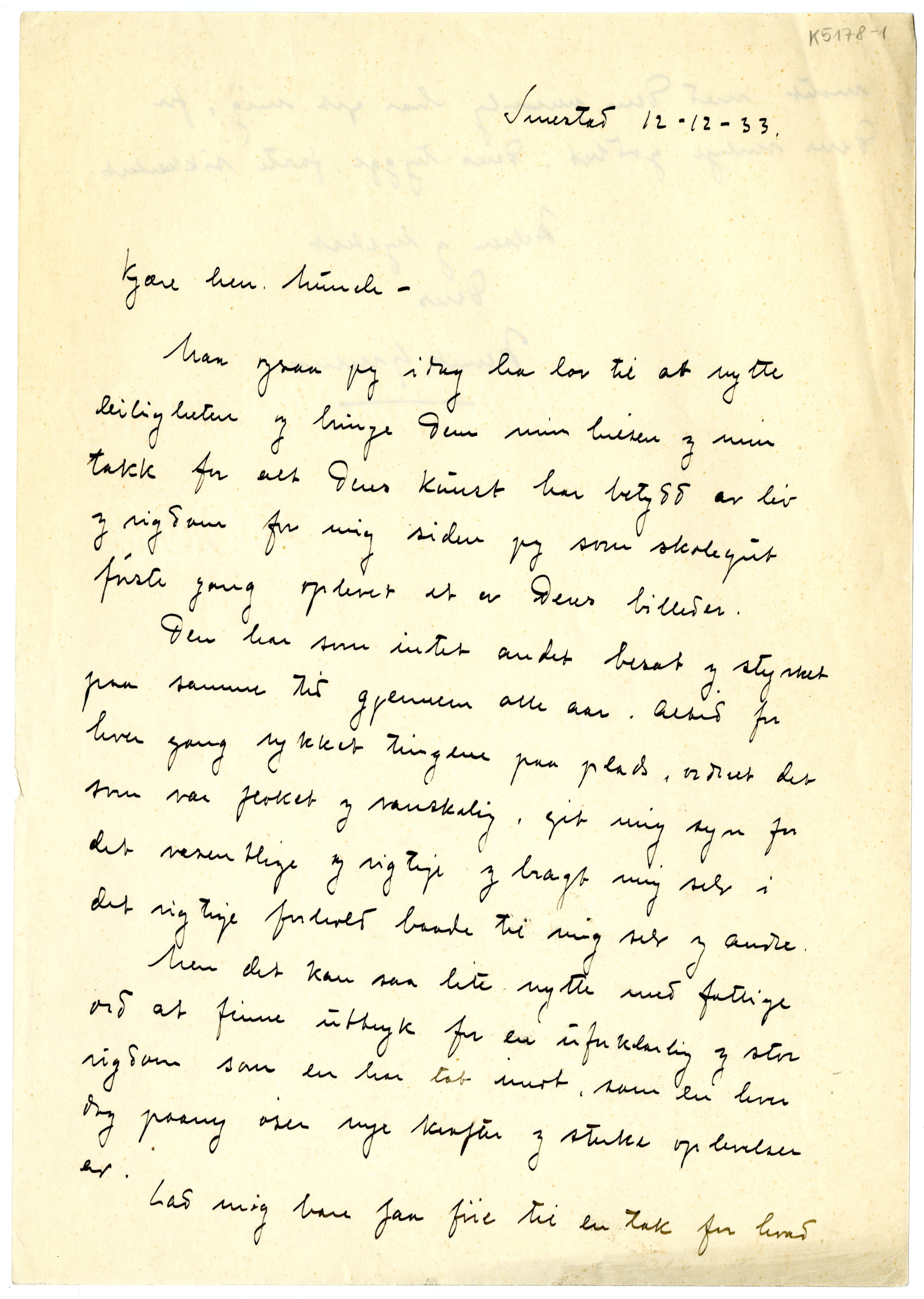 MM K 5178, Munchmuseet. Datert 12.12.1933. Brev fra Henrik Grevenor.
