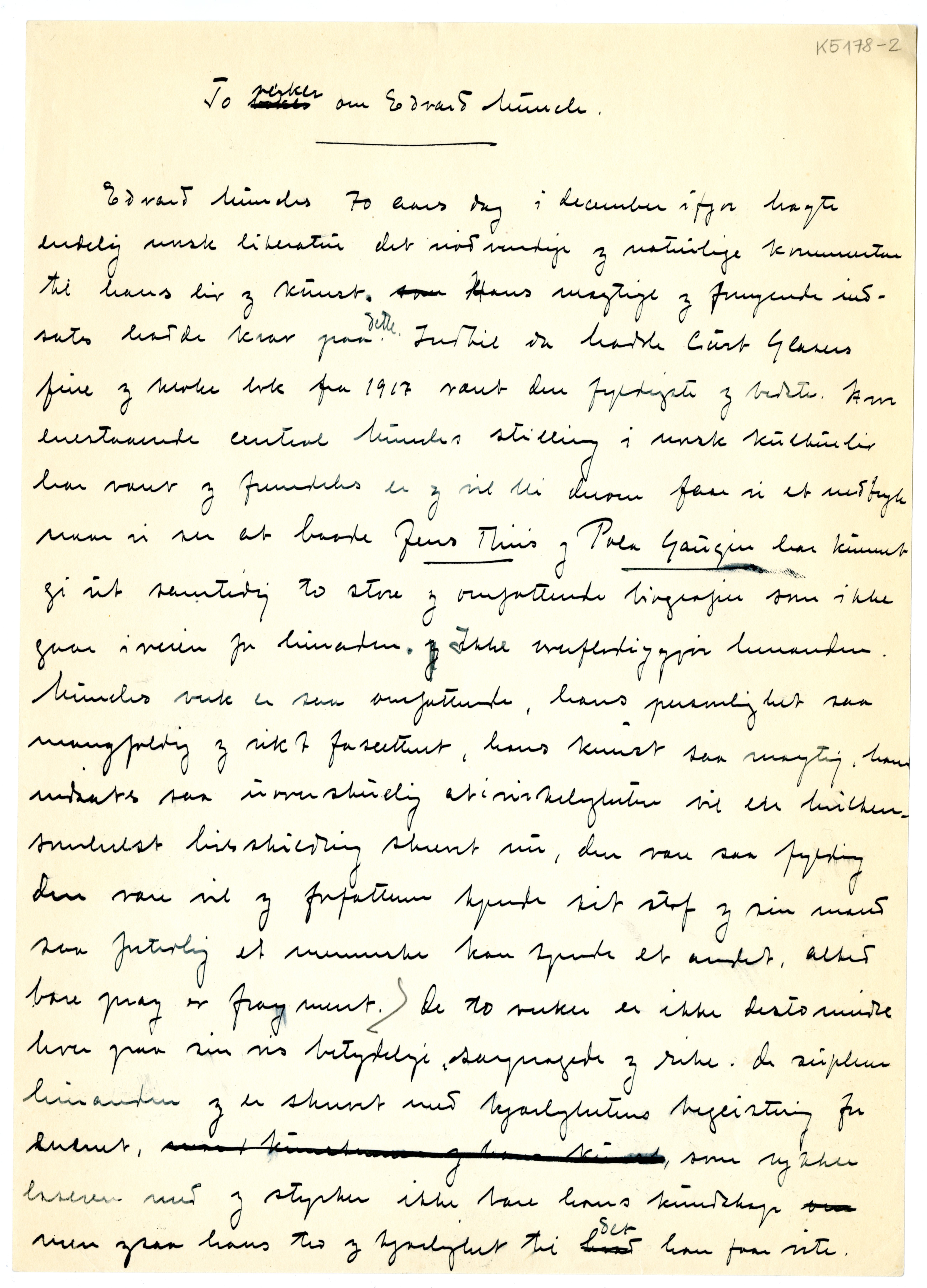 riktigere opfattelse av Munchs sammenhæng med og forhold