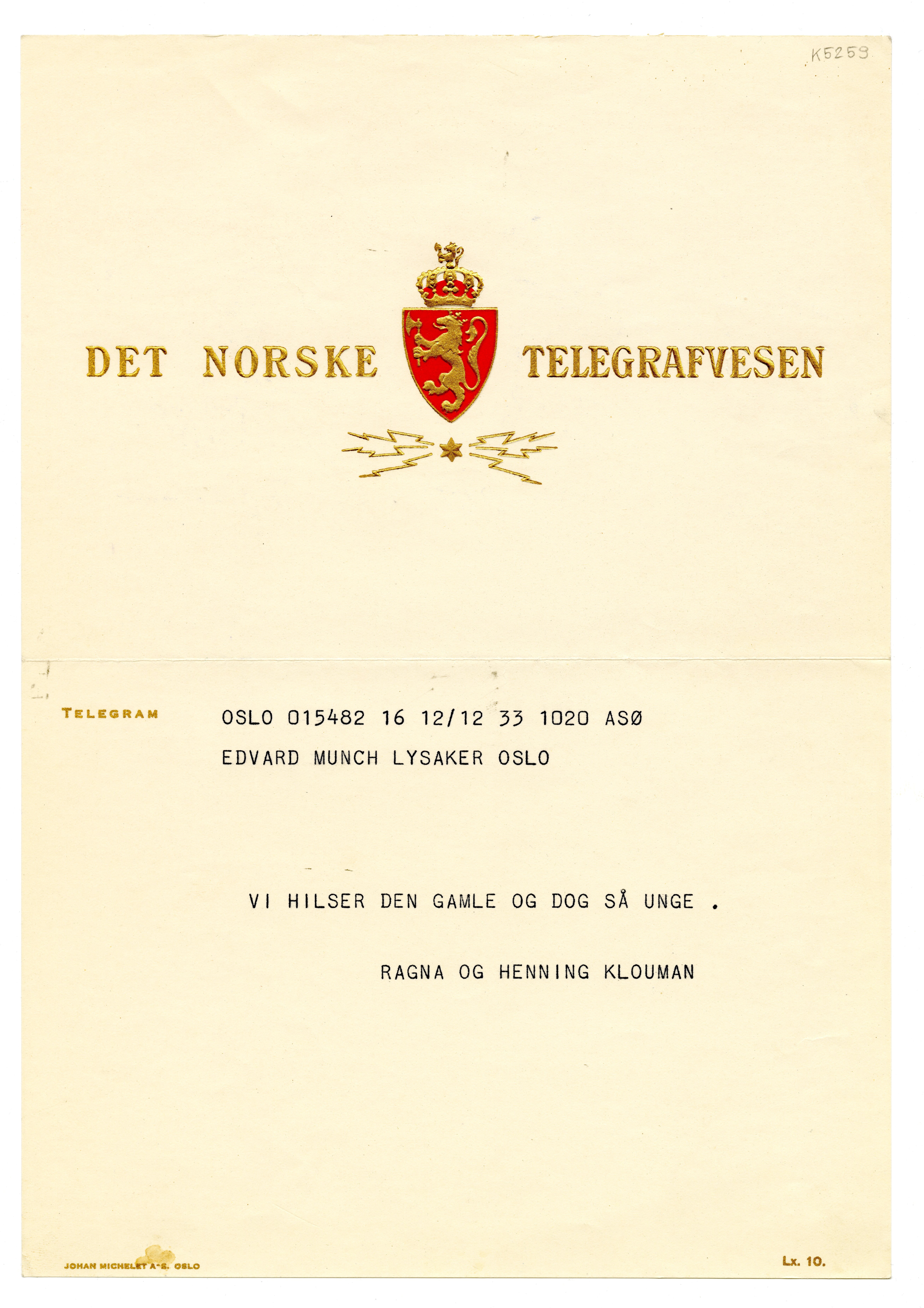 MM K 5259, Munchmuseet. Datert 12.12.1933. Brev fra Henning Klouman, Ragna Klouman.