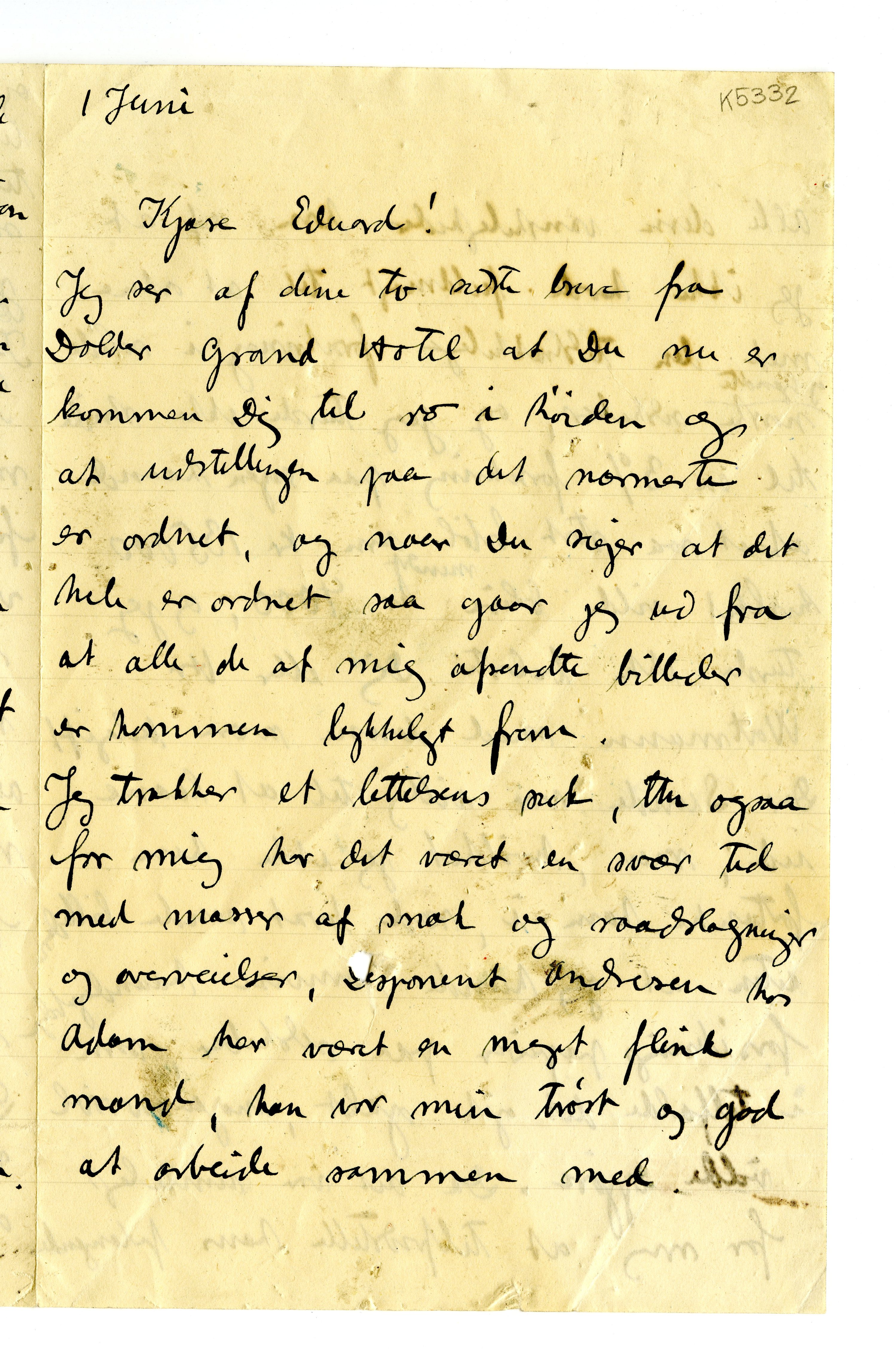 MM K 5332, Munchmuseet. Datert 01.06.1922. Brev fra Ludvig Ravensberg.