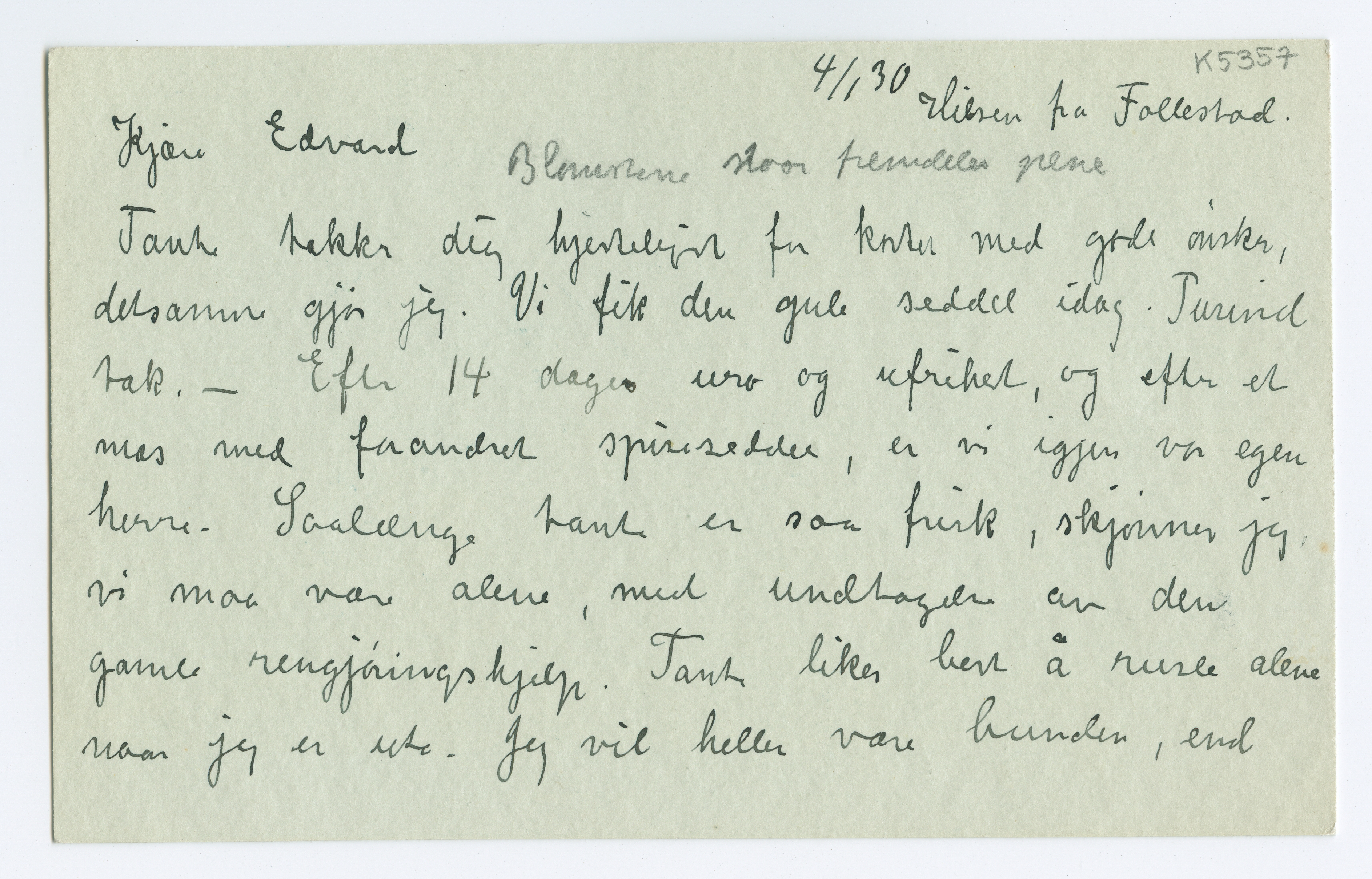 MM K 5357, Munchmuseet. Datert 04.01.1930. Brev fra Inger Munch.