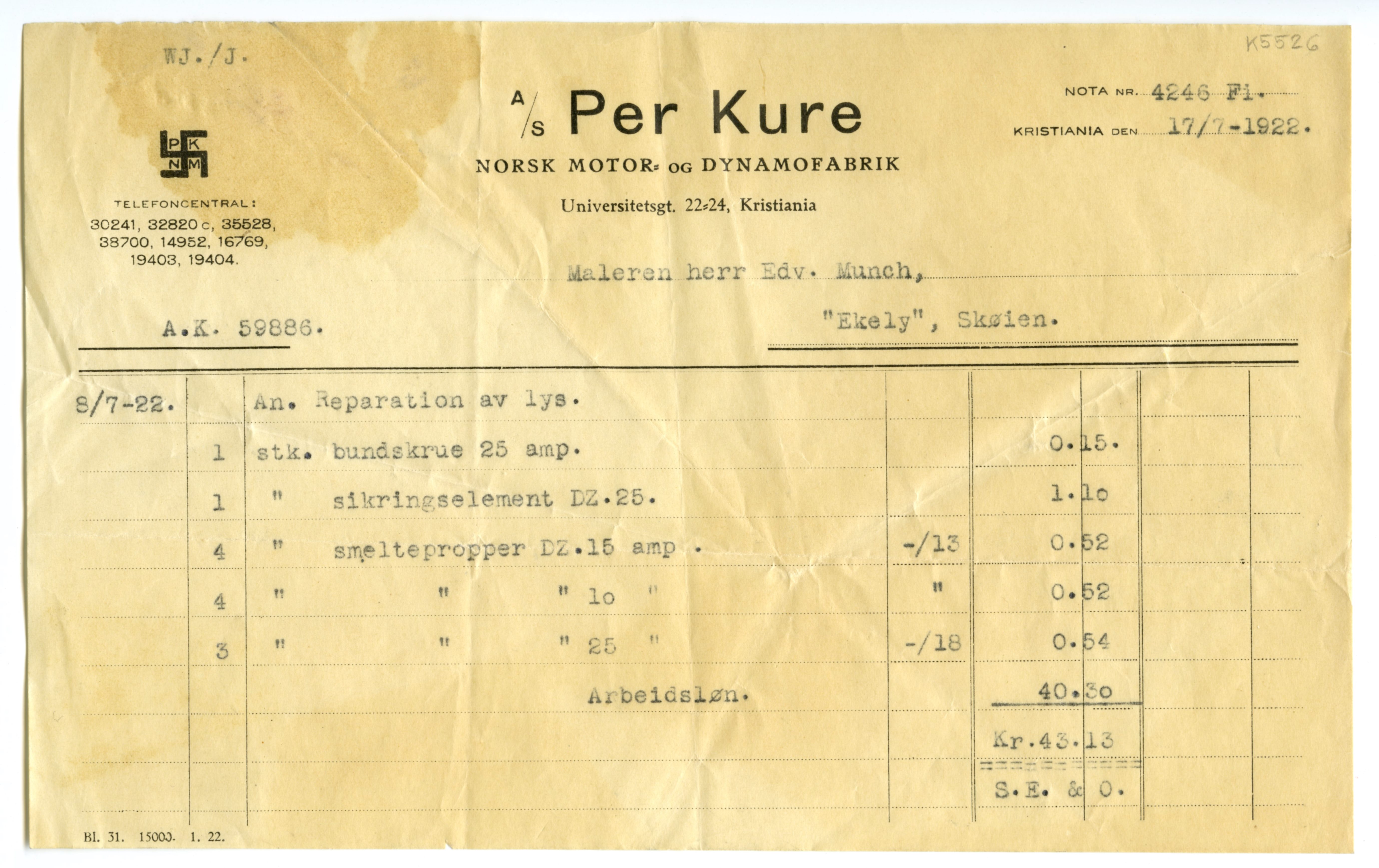 MM K 5526, Munchmuseet. Datert 17.07.1922. Brev fra Per Kure.