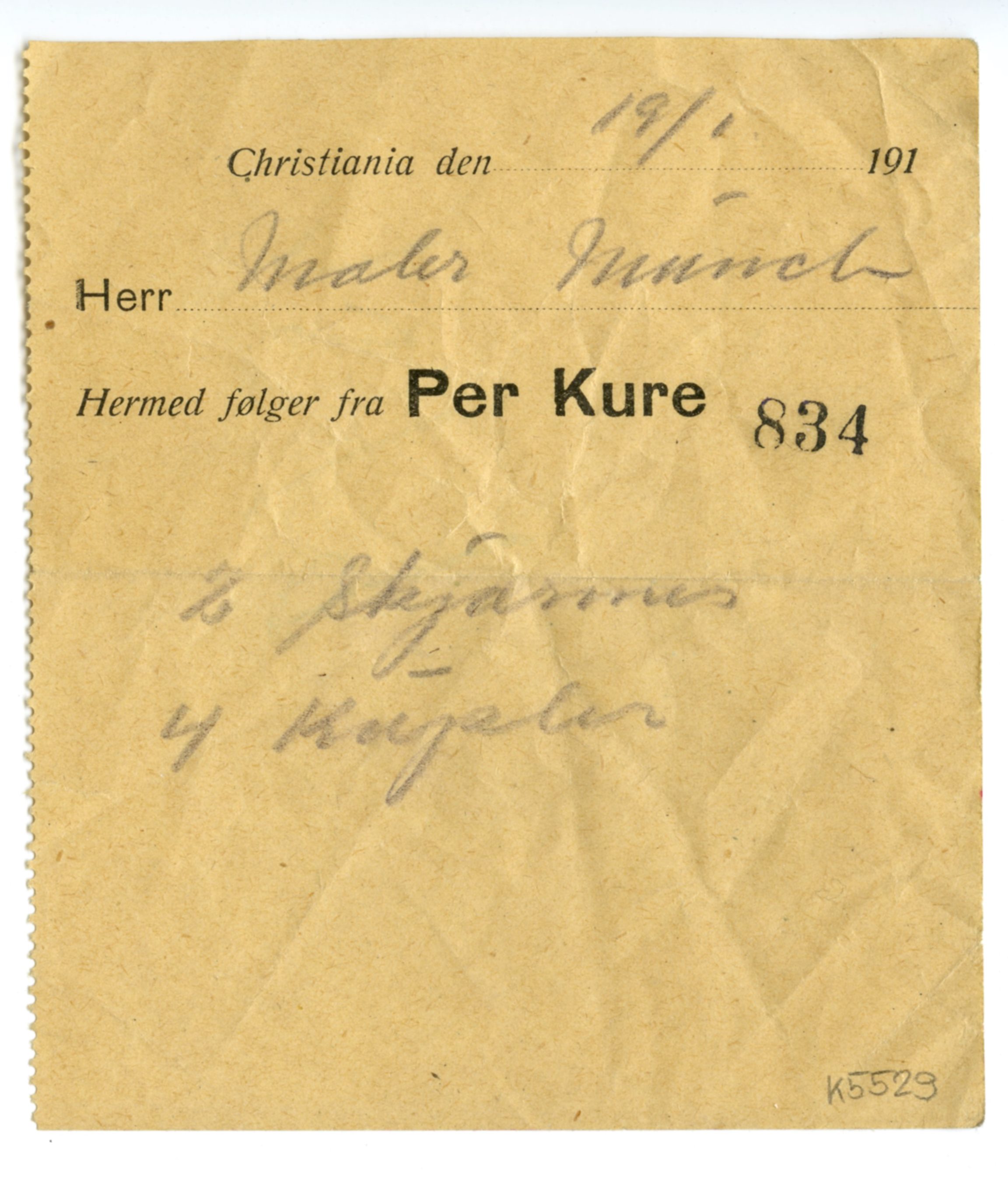 MM K 5529, Munchmuseet. Datert 19.01.191[?]. Brev fra Per Kure.