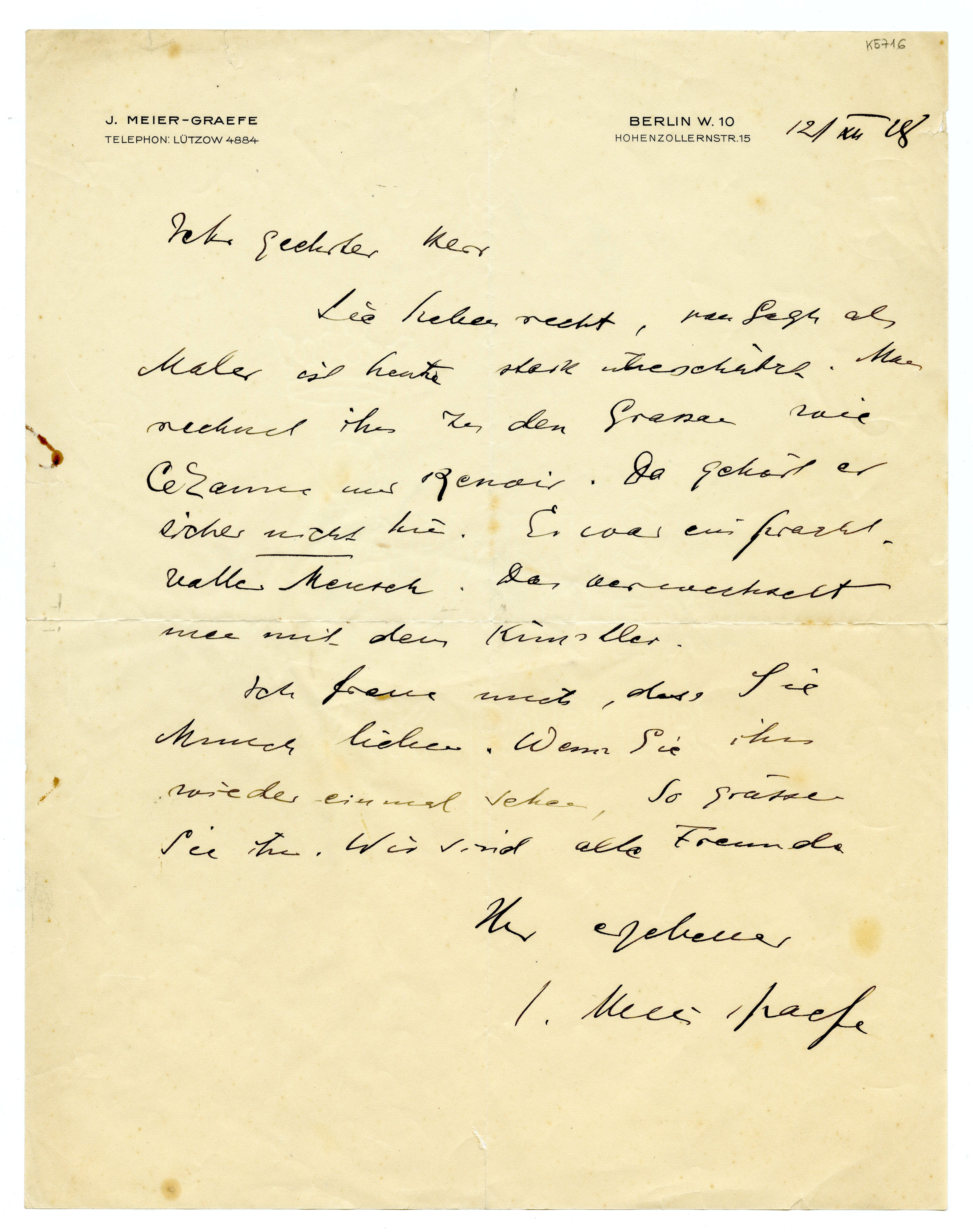 MM K 5716, Munchmuseet. Datert 12.12.1908. Brev fra Julius Meier-Graefe.