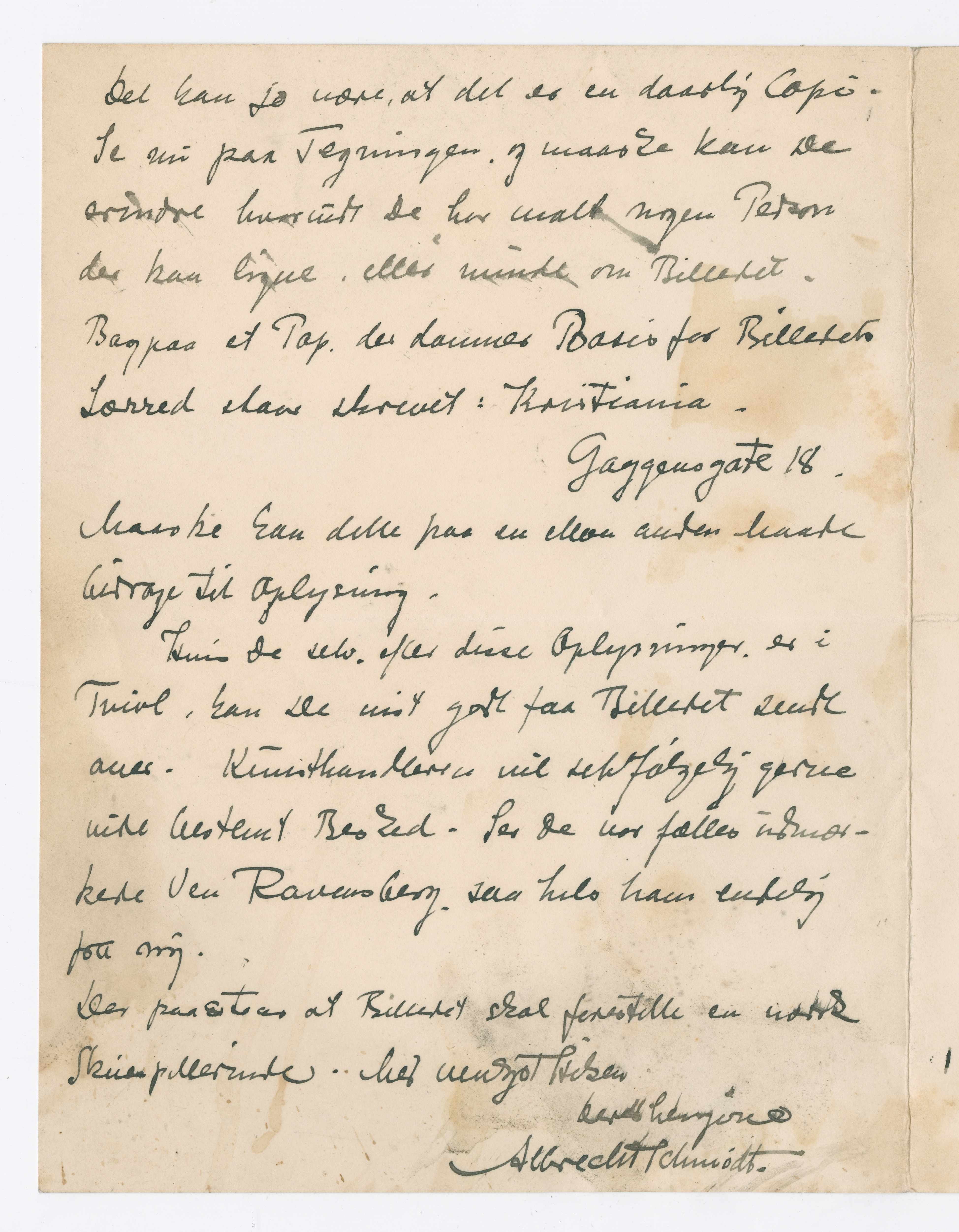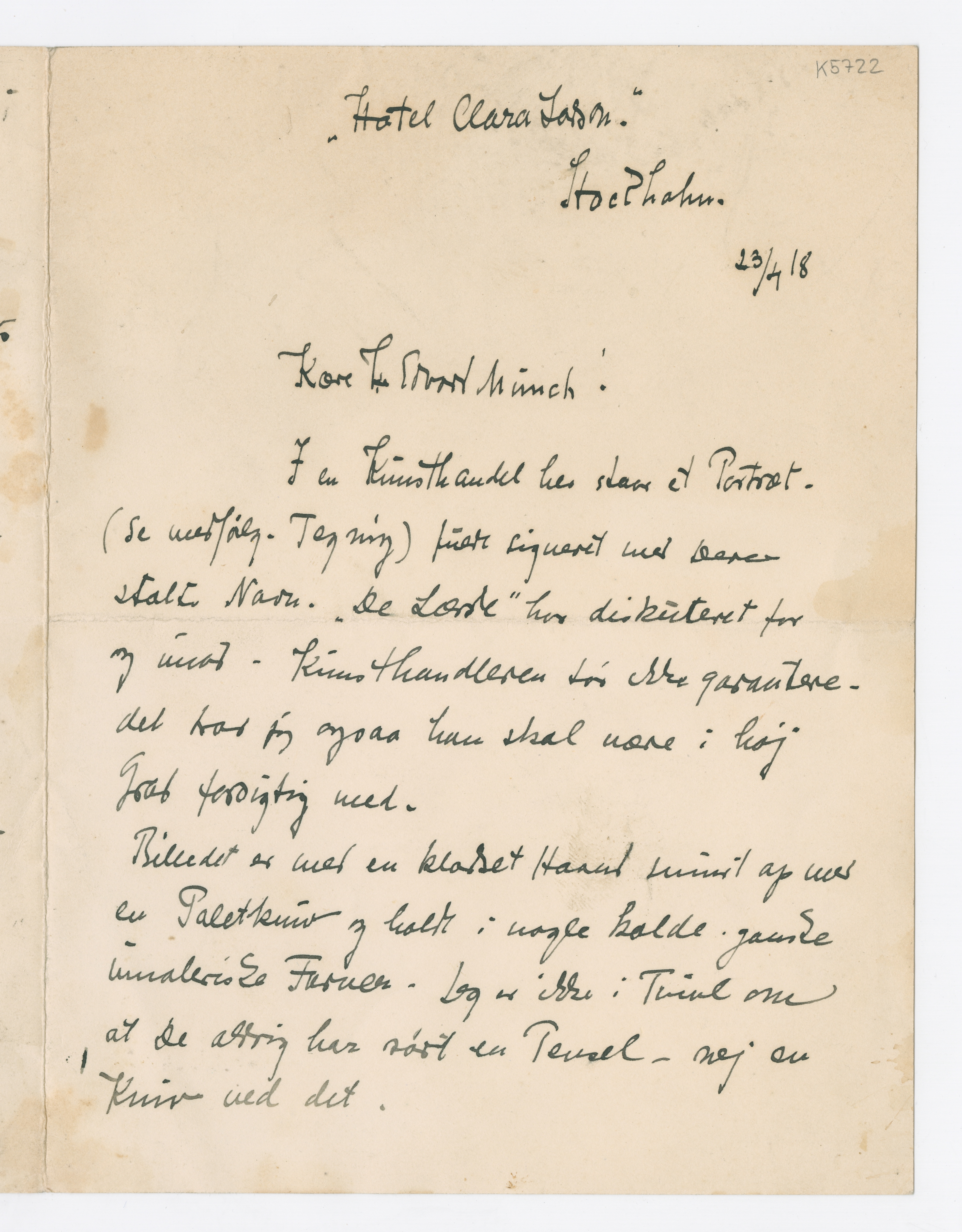MM K 5722, Munchmuseet. Datert 23.04.1918. Brev fra Albrecht Schmidt.
