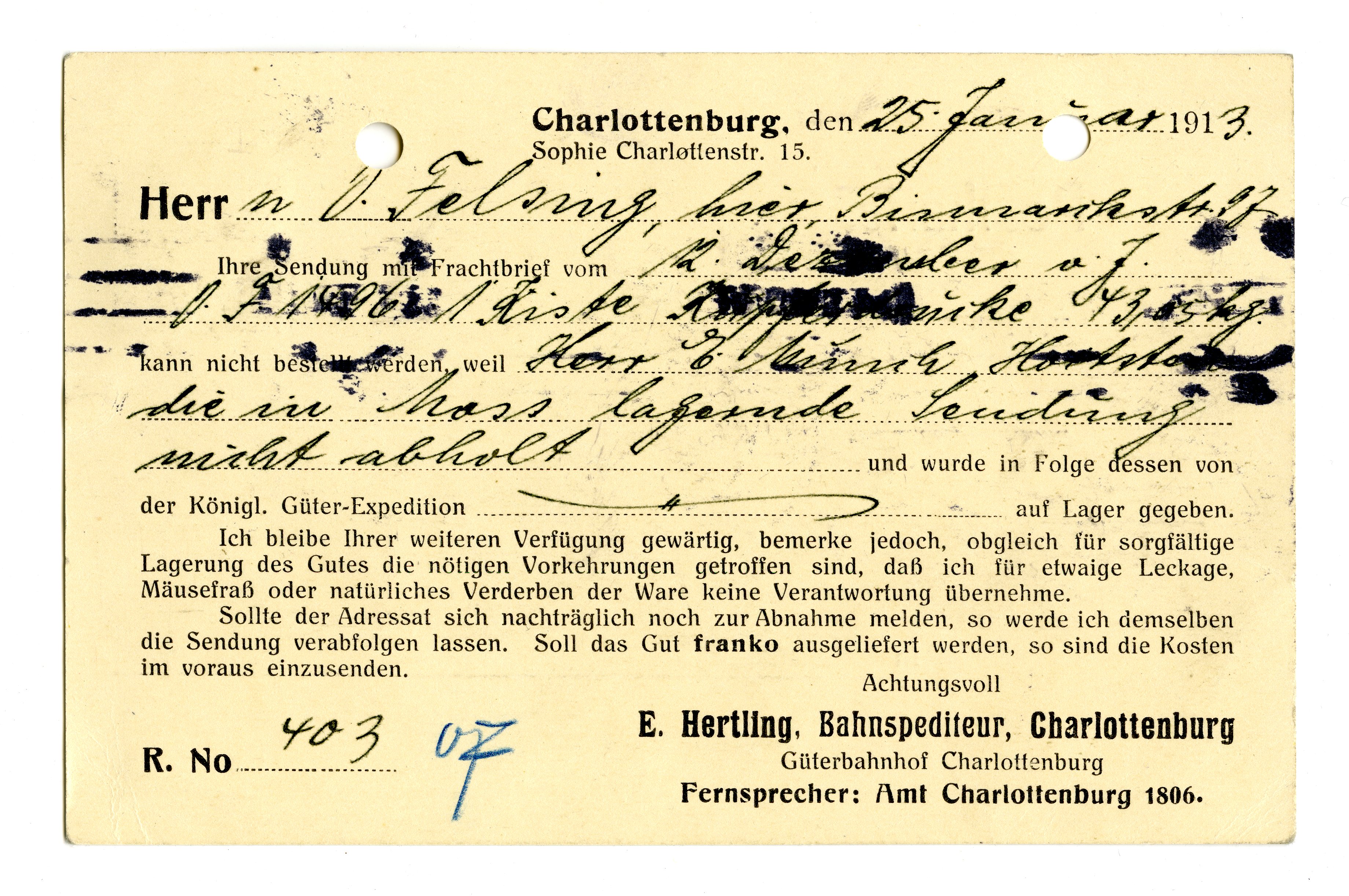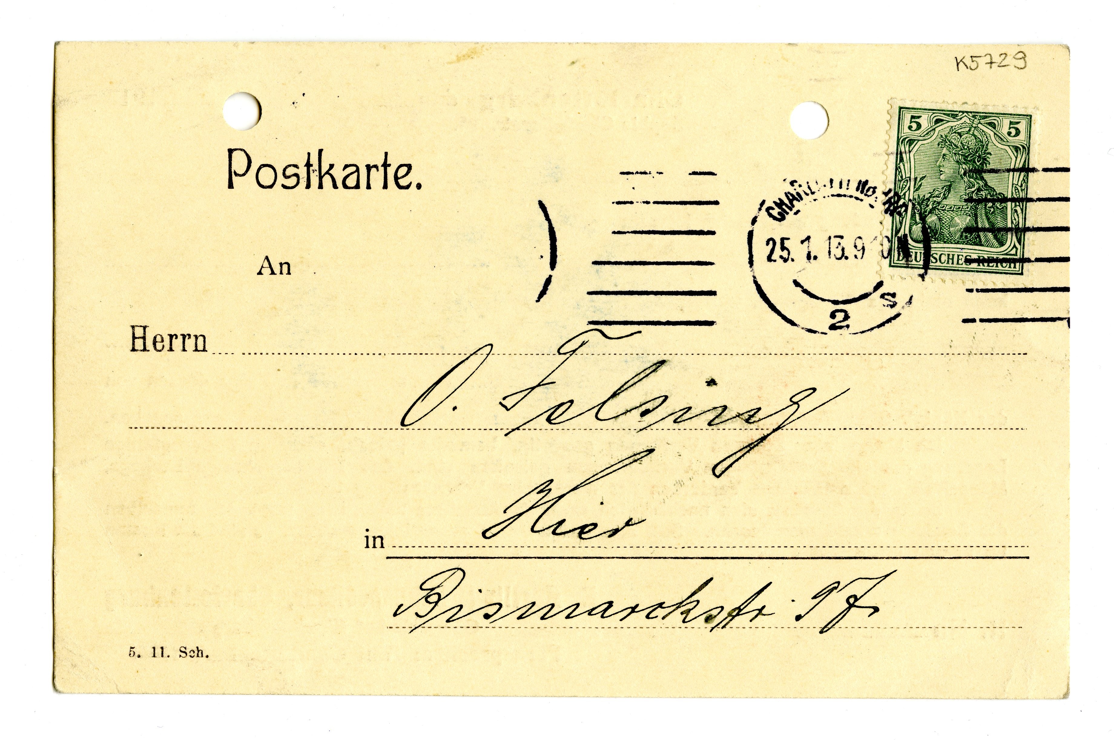 MM K 5729, Munchmuseet. Datert 25.01.1913. Brev fra Wilhelm Felsing, Hof-Kunstkupferdruckerei O. Felsing.