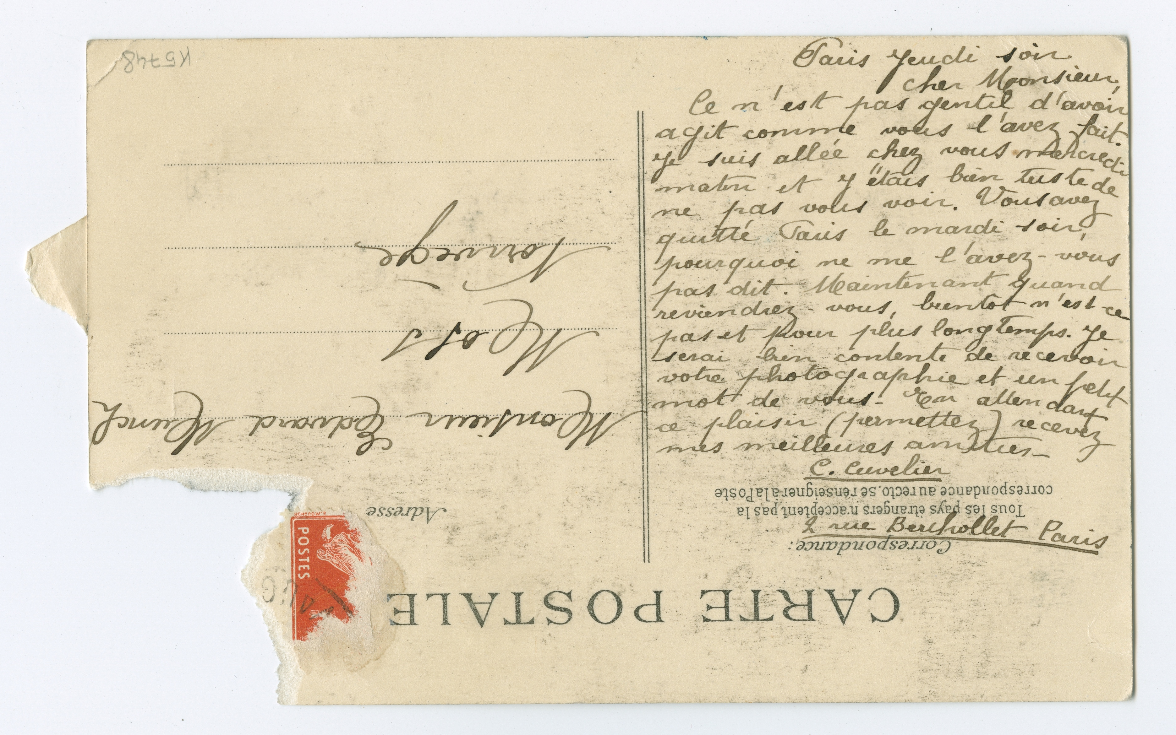 MM K 5748, Munchmuseet. Ikke datert. Brev fra Céline Cuvelier.