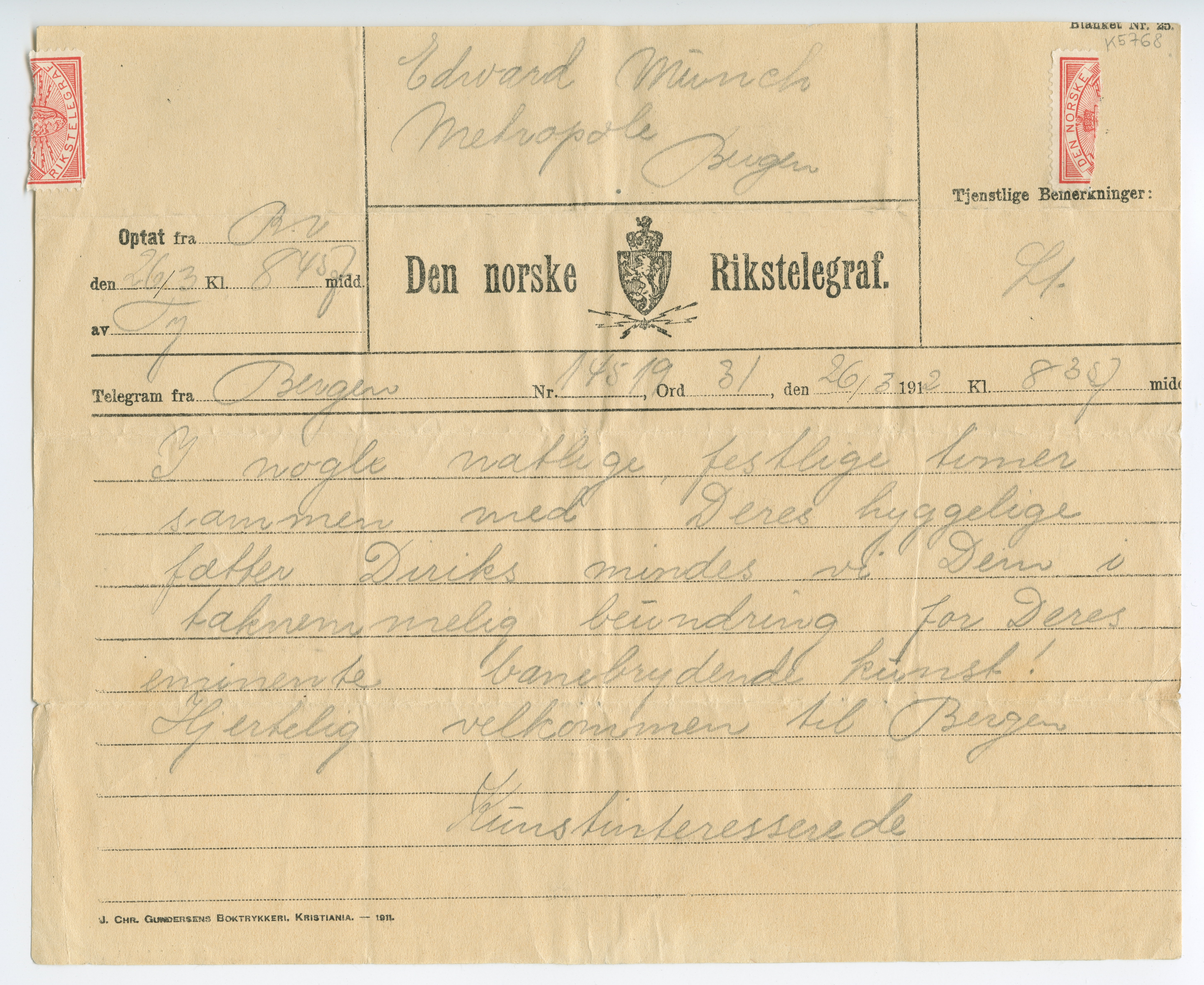 MM K 5768, Munchmuseet. Datert 26.03.1912. Brev fra Kunstinteresserede.