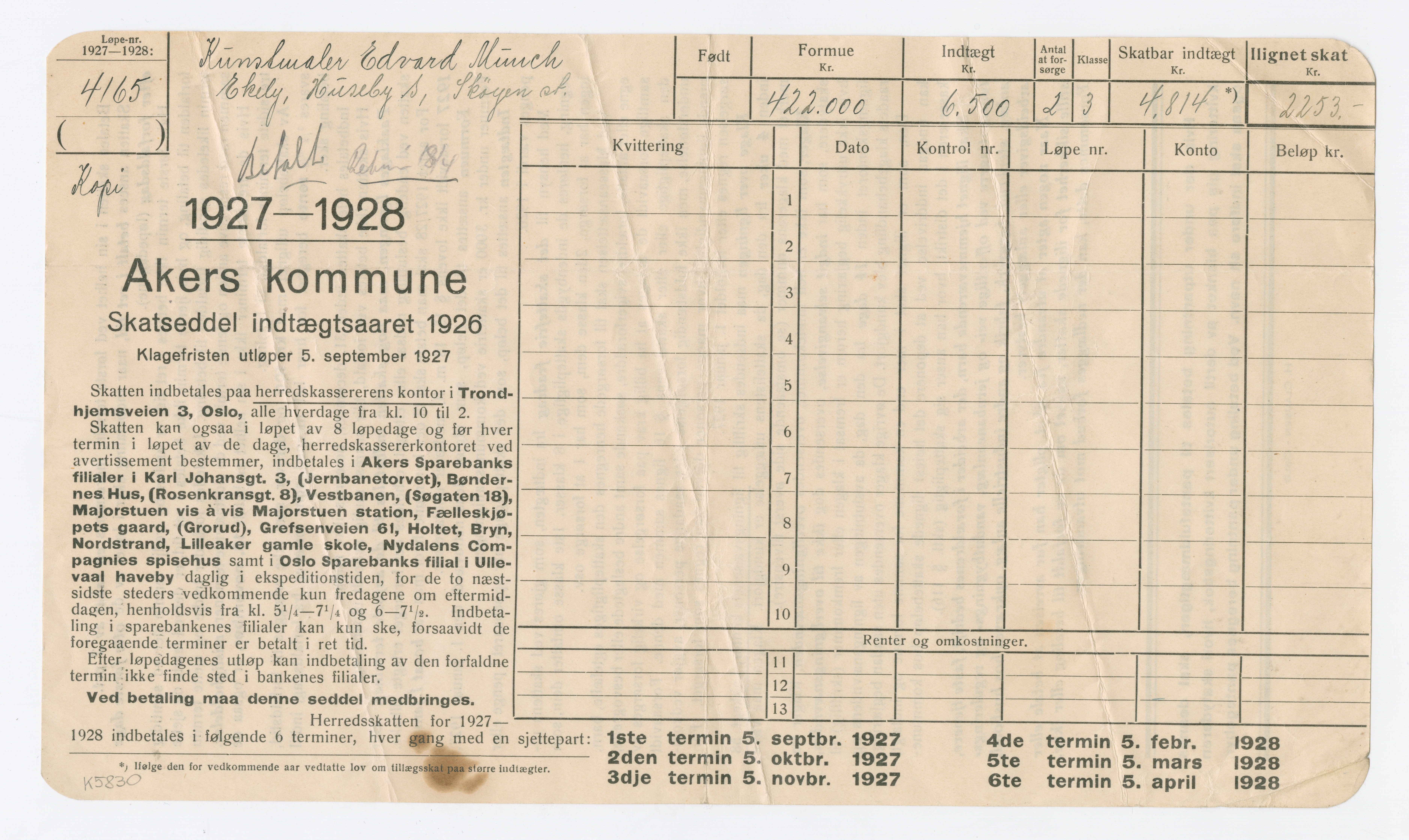 MM K 5830, Munchmuseet. Datert 1927–1928. Brev fra Akers kommune.