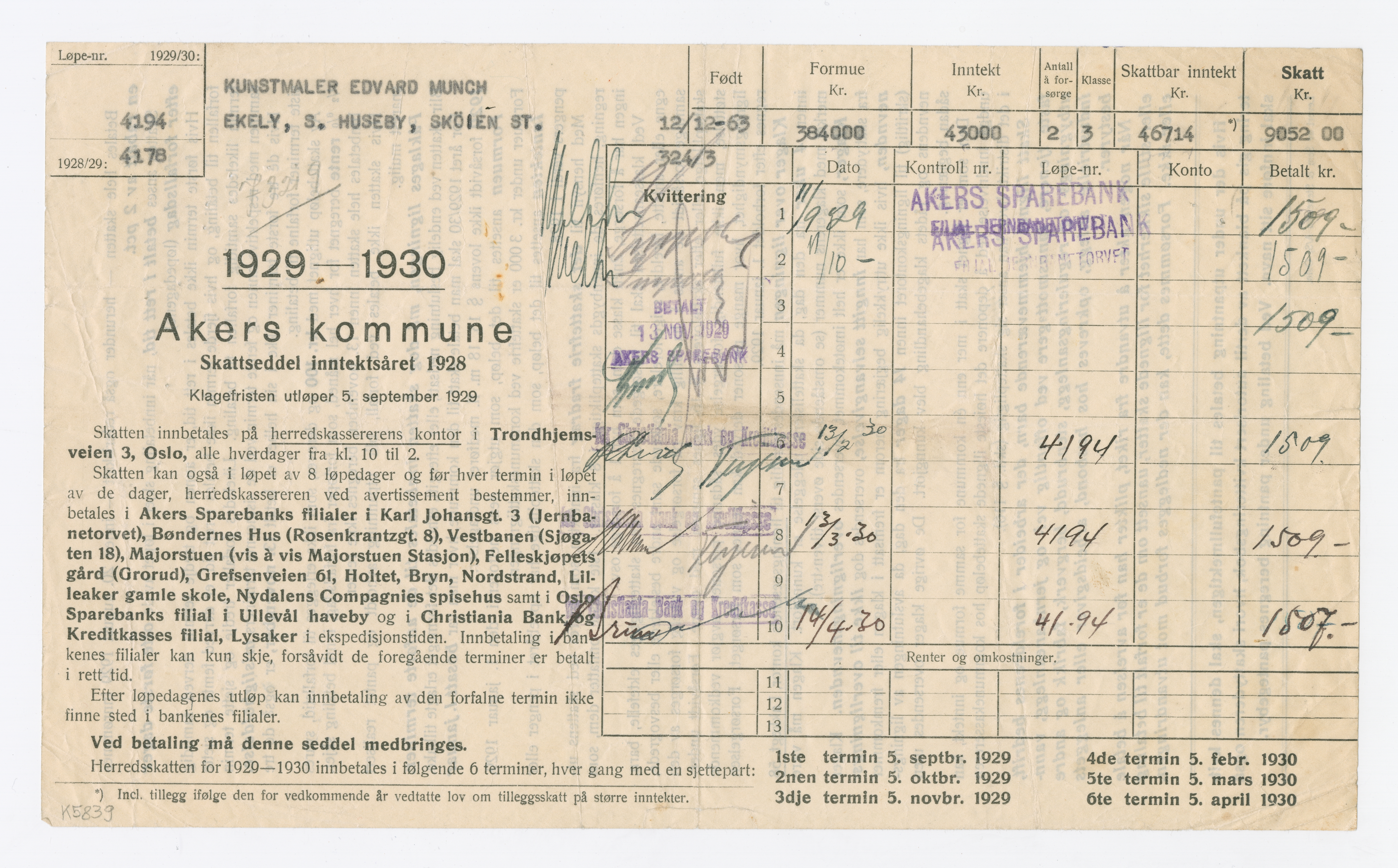 MM K 5839, Munchmuseet. Datert 1929–1930. Brev fra Akers kommune.