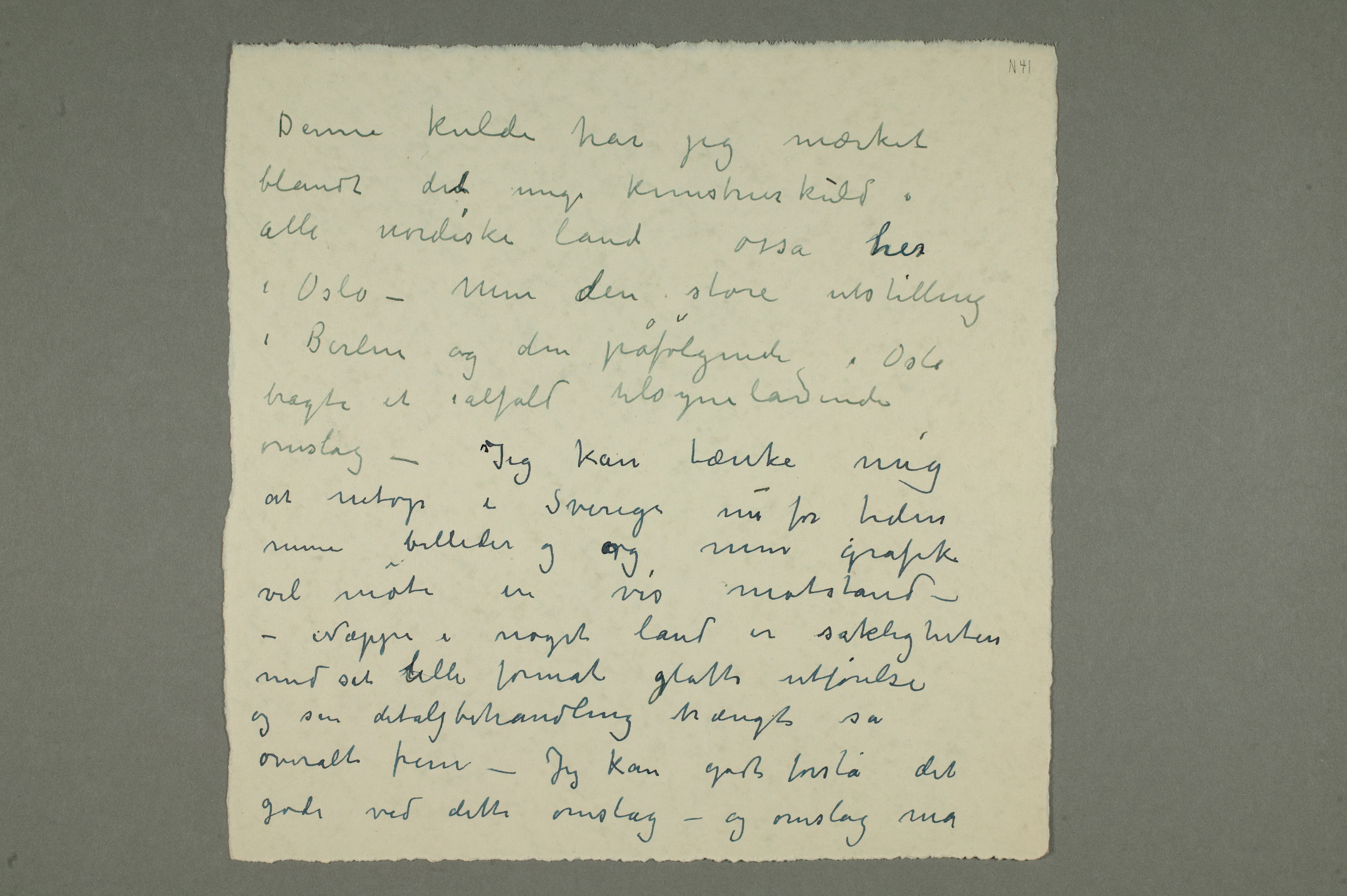 MM N 41, Munchmuseet. Datert 1929. Brevutkast til Ragnar Hoppe.