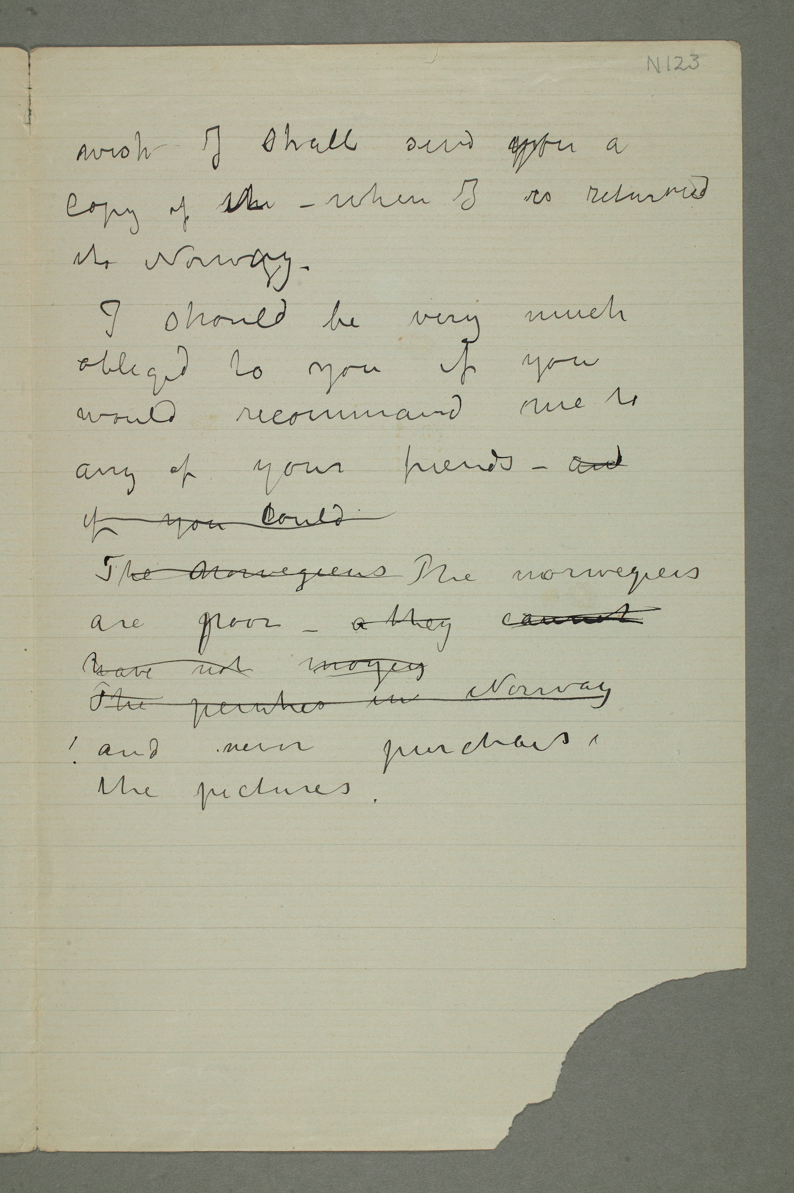 MM N 123, Munchmuseet. Datert 1890. Brevutkast til Richard Aldrich McCurdy.