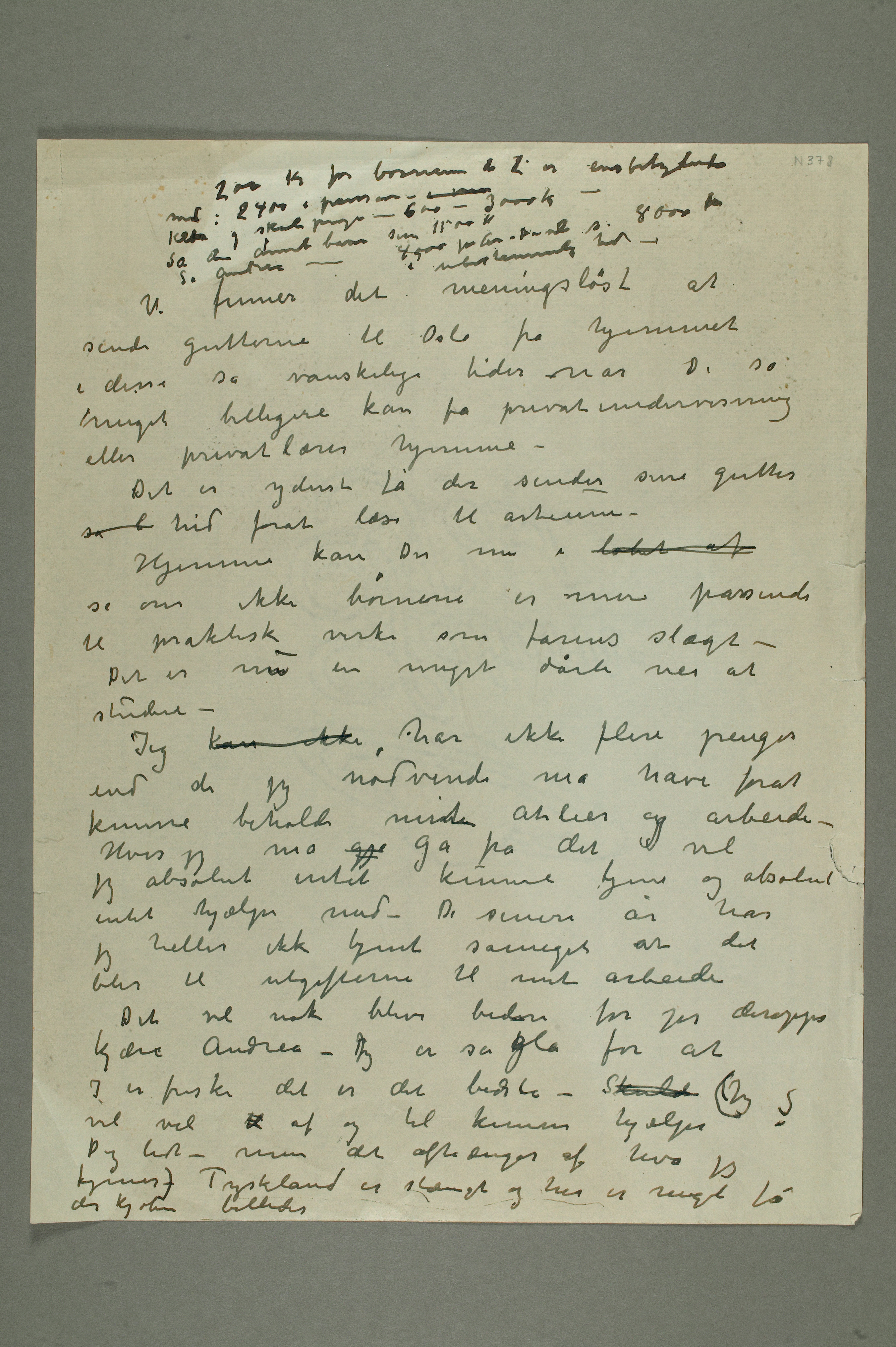 MM N 378, Munchmuseet. Ikke datert. Brevutkast til Uidentifisert person.
