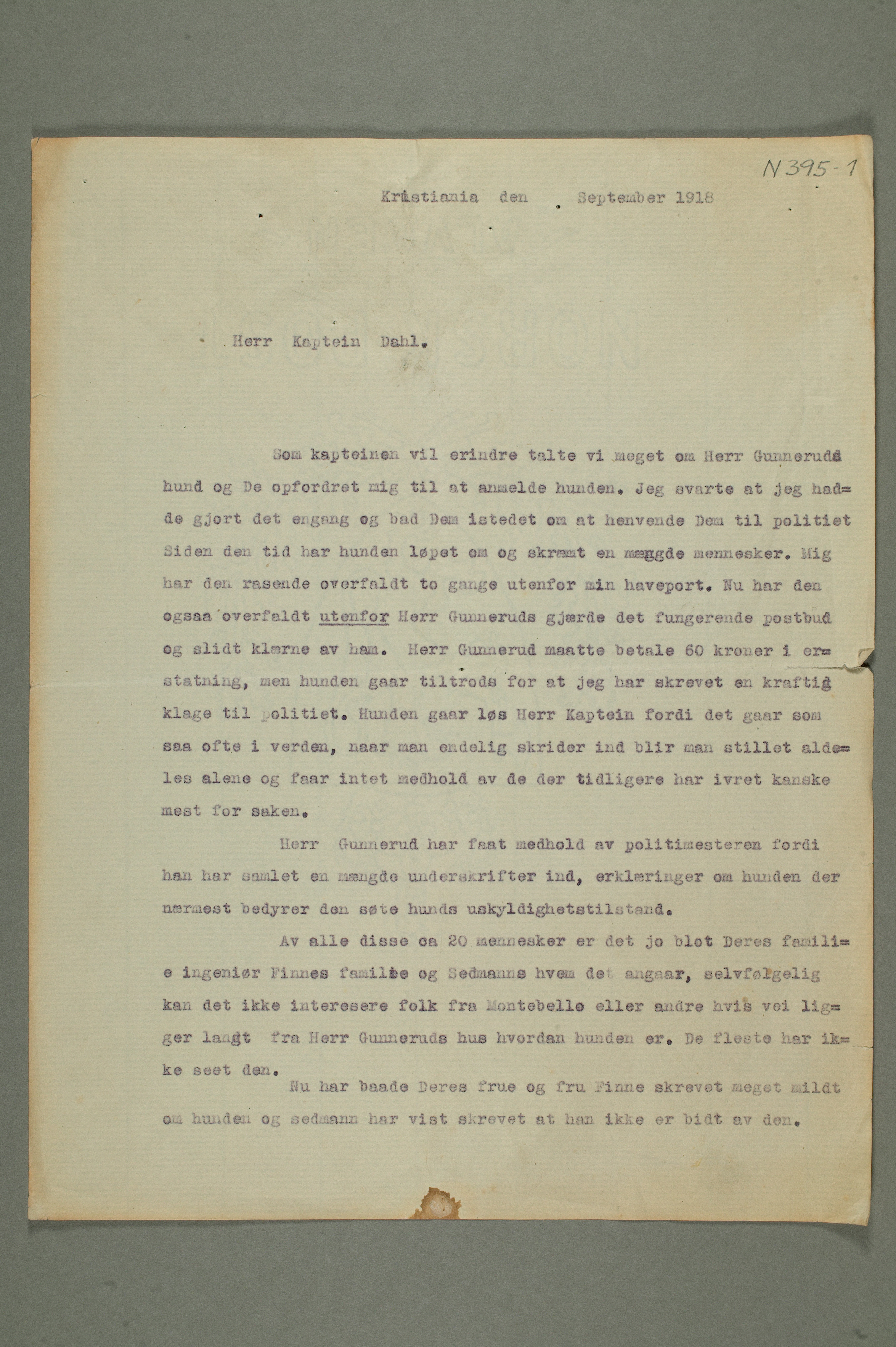 MM N 395, Munchmuseet. Datert 9.1918. Brev til Christian Axel Dahl