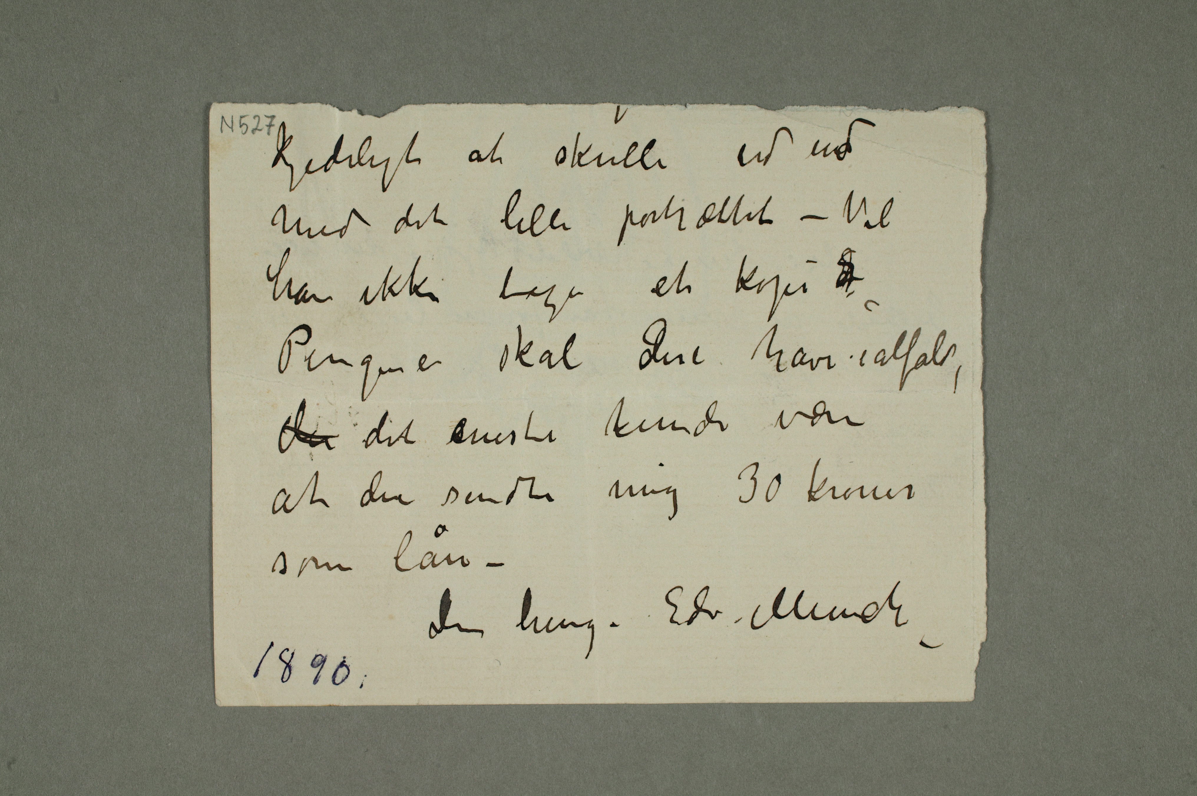 MM N 527, Munchmuseet. Ikke datert. Brevutkast til Uidentifisert mann.