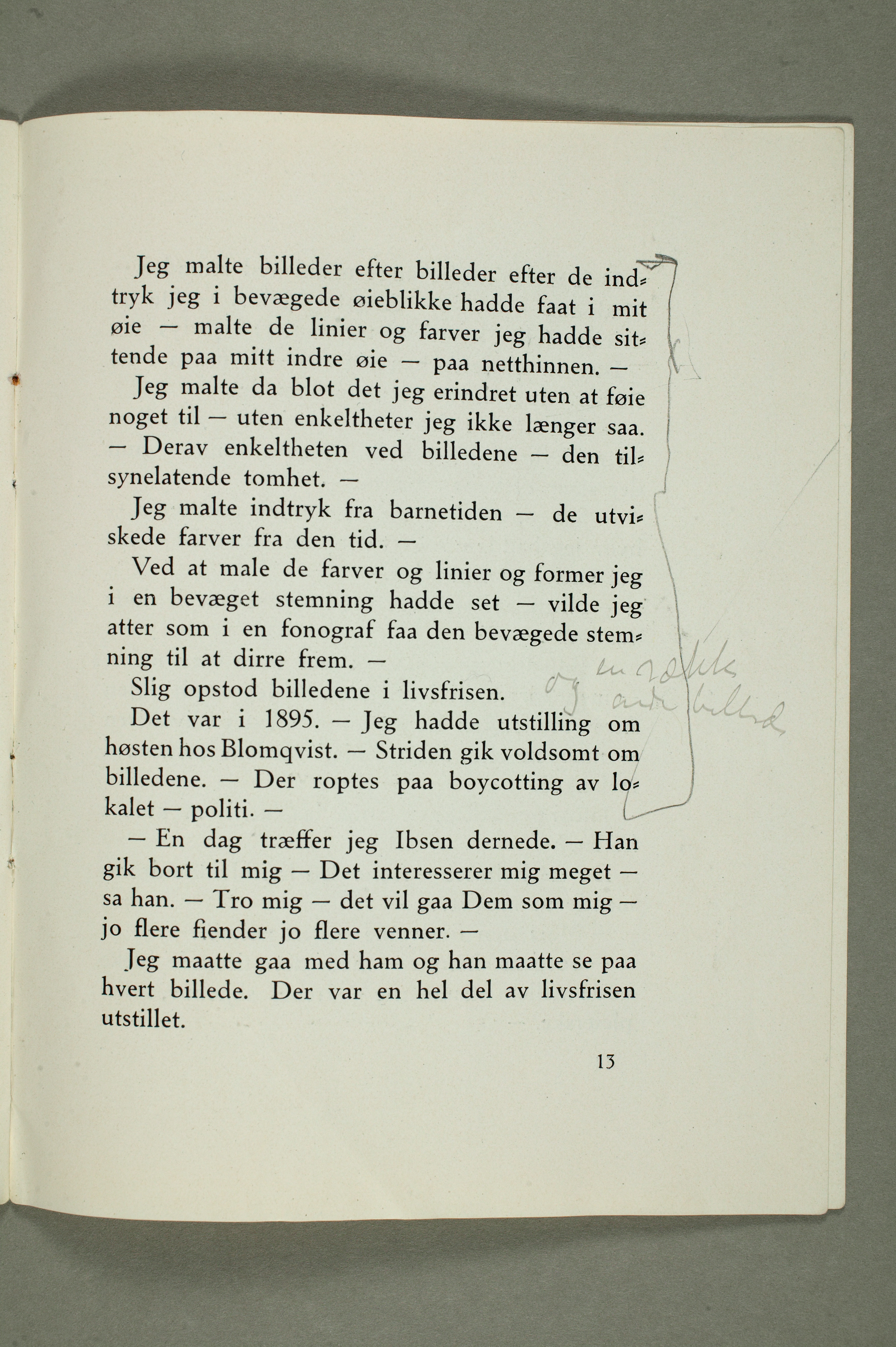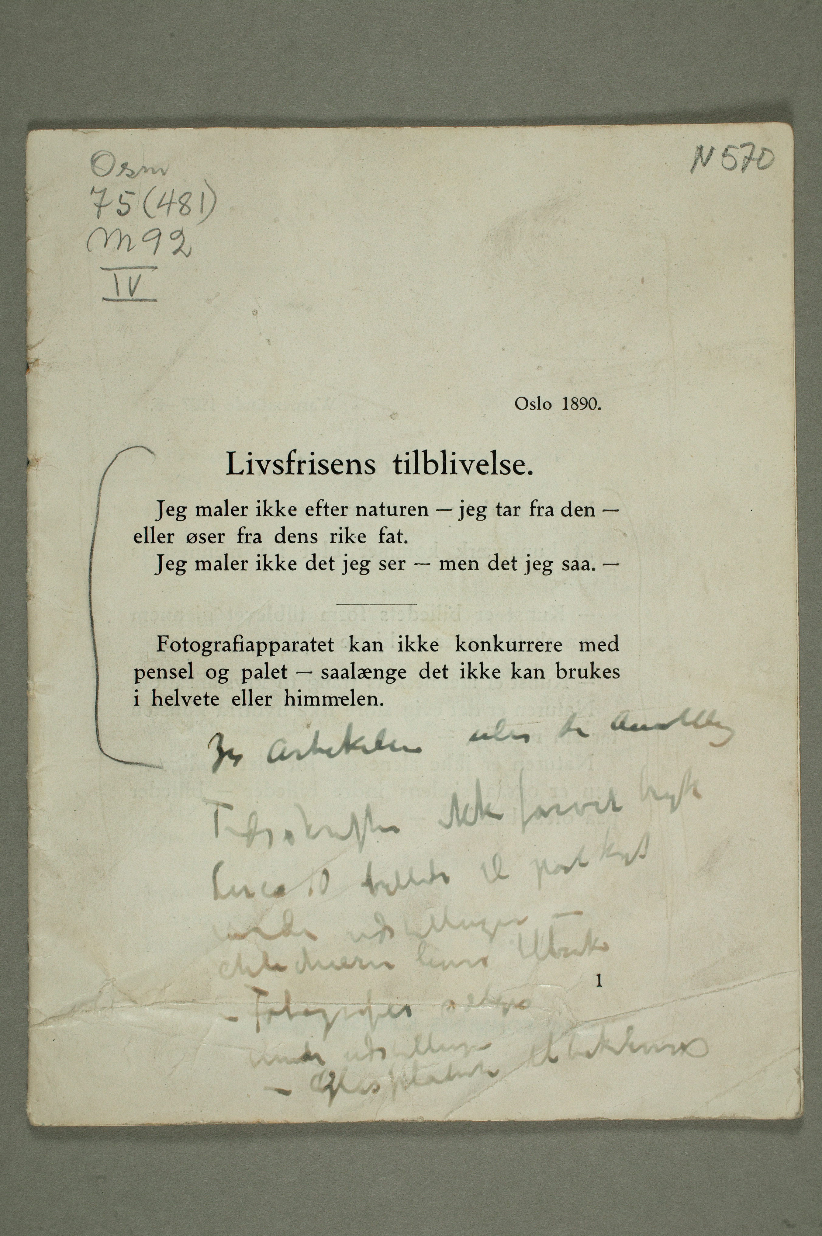 Filologisk kommentar: Trykt hefte med påskrifter av Munch.