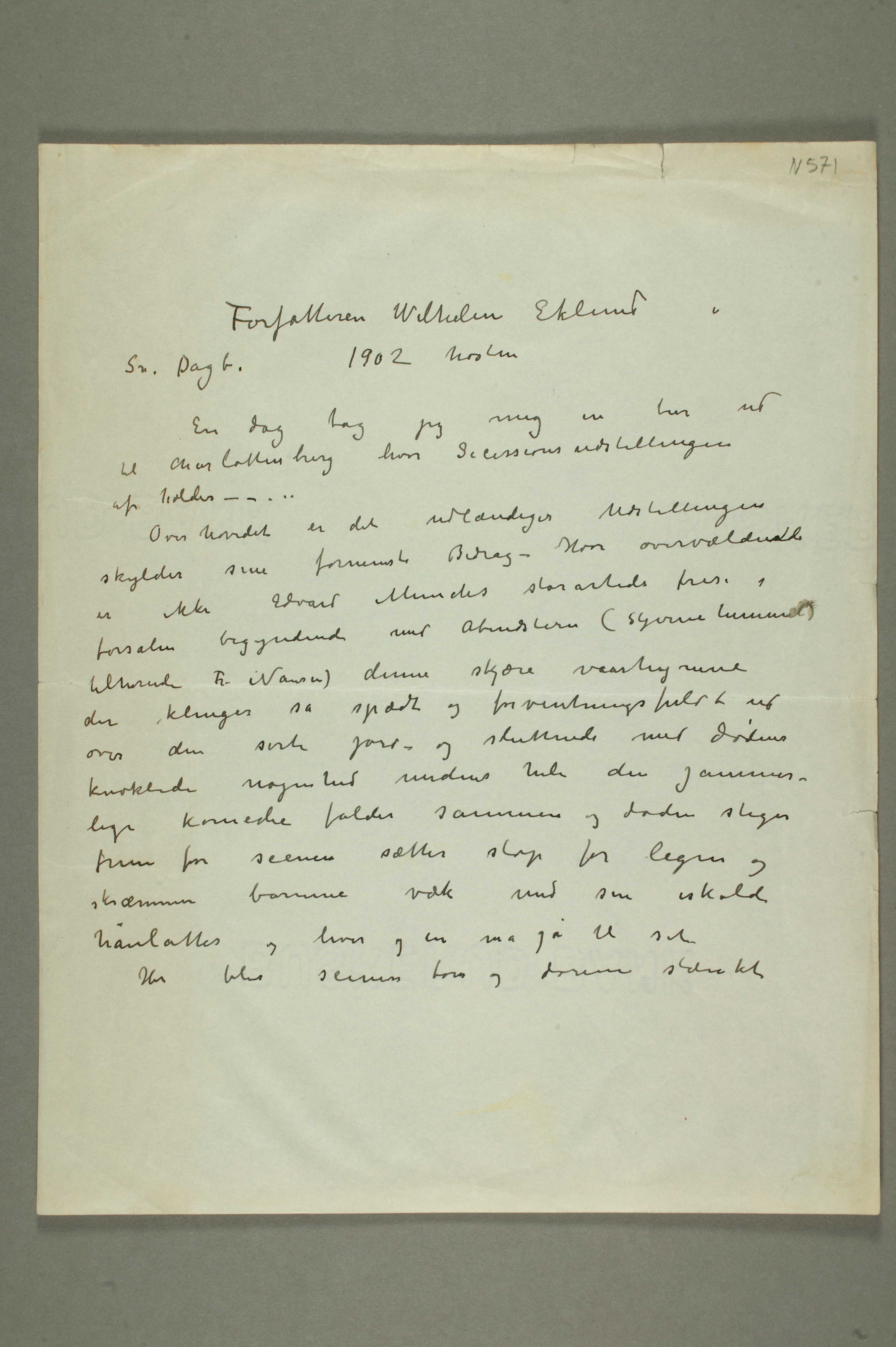 Filologisk kommentar: Avskrift (ikke komplett) av avisartikkel (kåseriartikkel av Wilhelm Eklund) fra Svenska Dagbladet 7.9.1902.