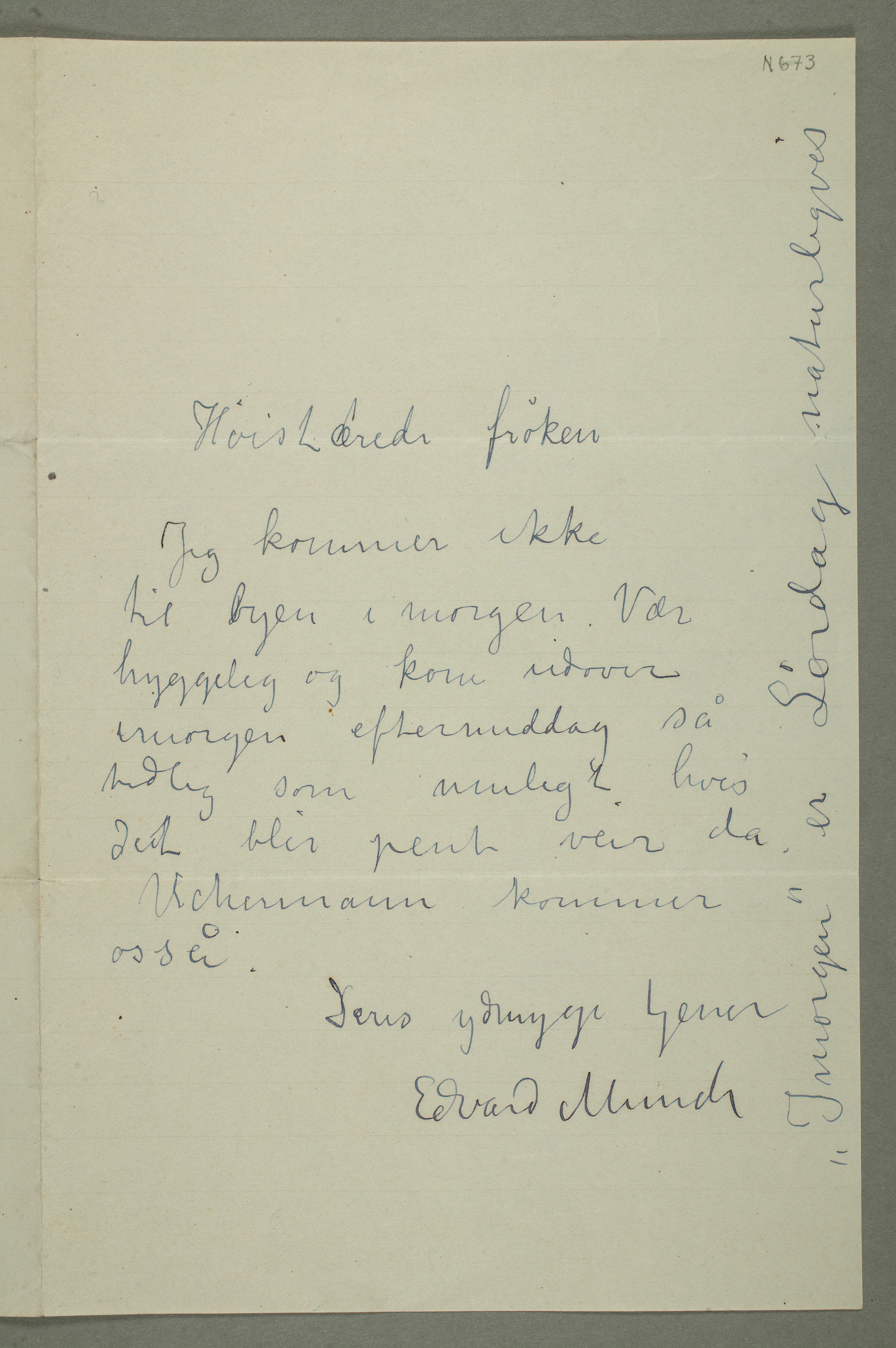MM N 673, Munchmuseet. Ikke datert. Brevutkast til Uidentifisert kvinne.
